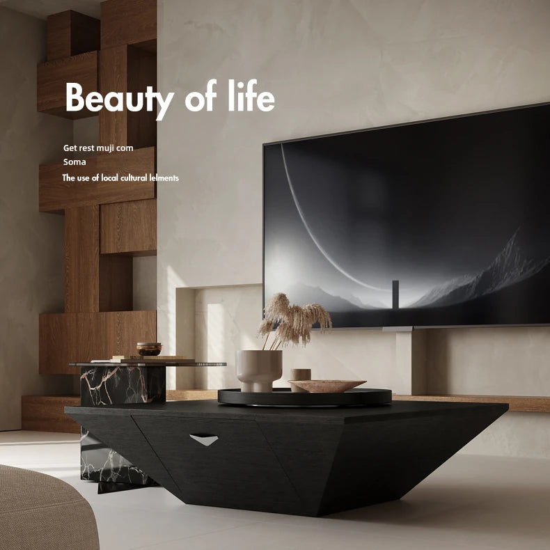モダンデザインの高級センターテーブル|無垢材×セラミック×大理石の融合 fkb-4387