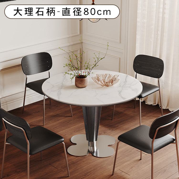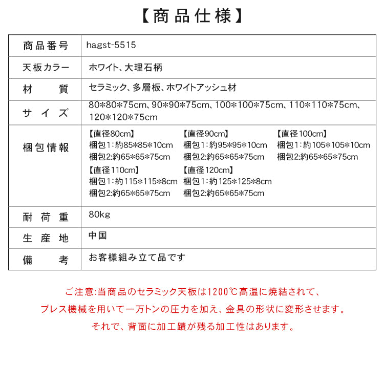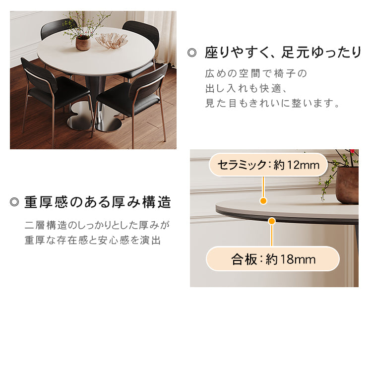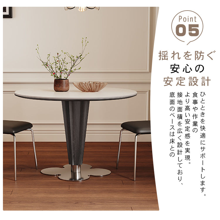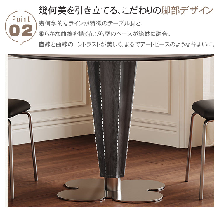 実木セラミック天板ラウンドダイニングテーブル クローバーデザイン金属ベース 商談用テーブル hagst-5515