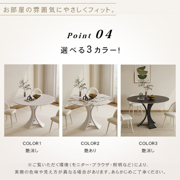 セラミック天板使用の高級円形ダイニングテーブル – モダンなダイニングに映える洗練デザイン htt-3536