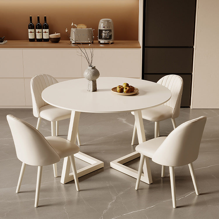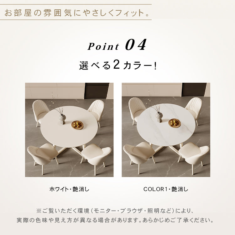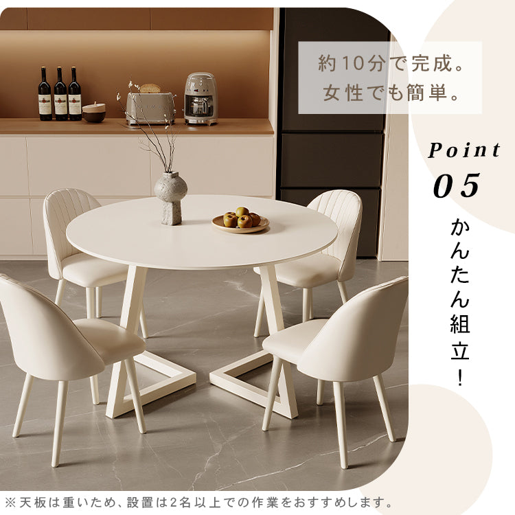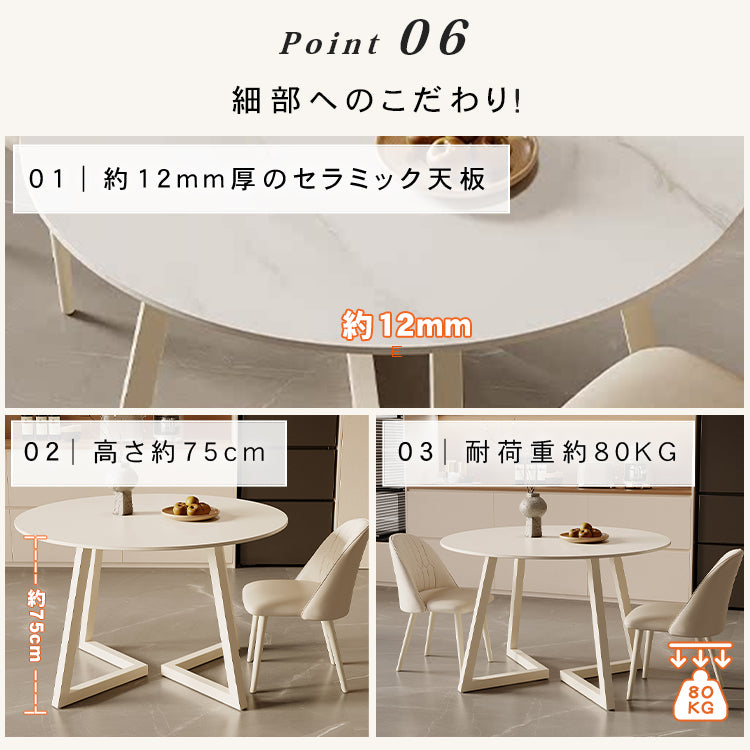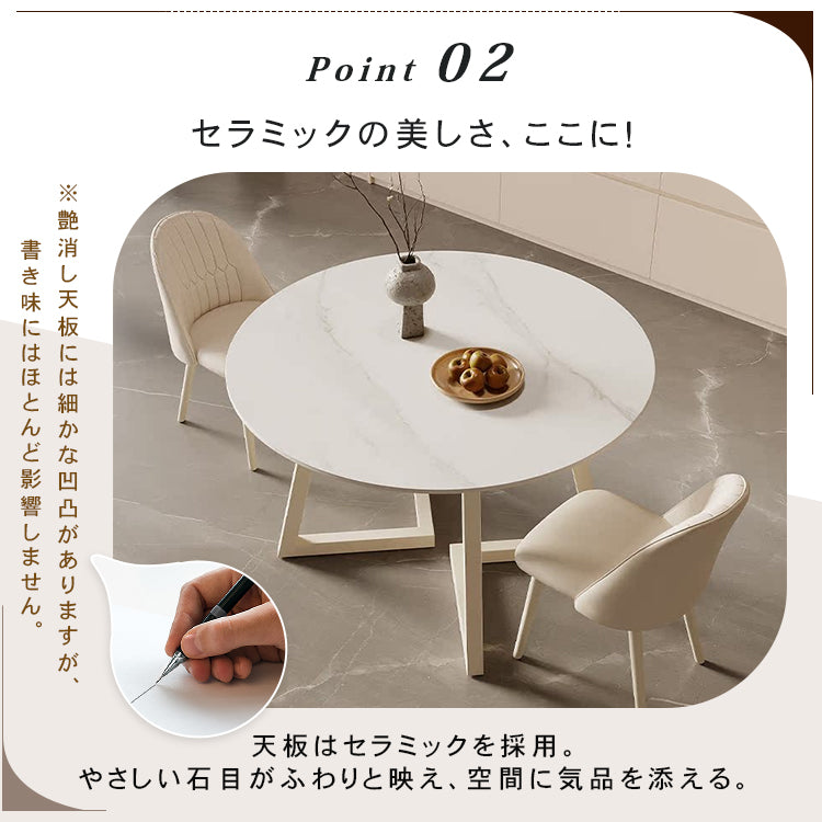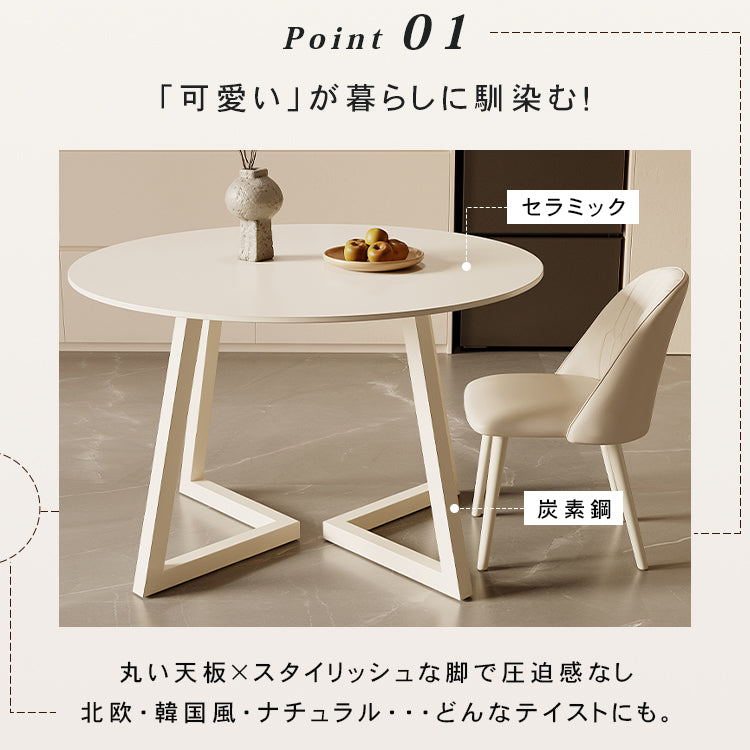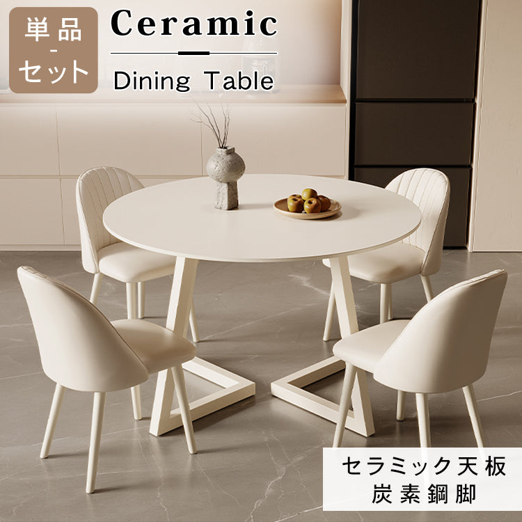 クリーム風円形セラミック天板ダイニングテーブル モダンシンプル軽ラグジュアリーデザイン hxh-5690