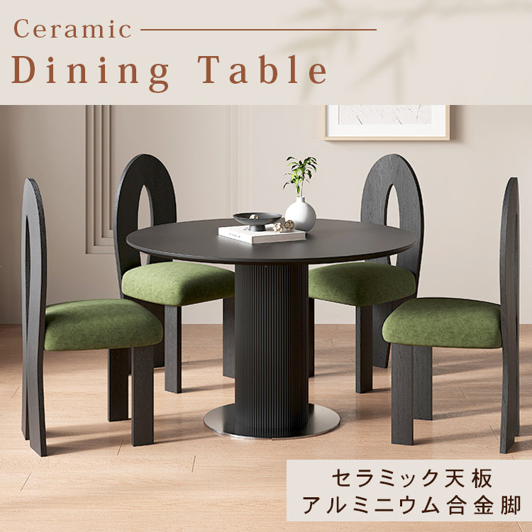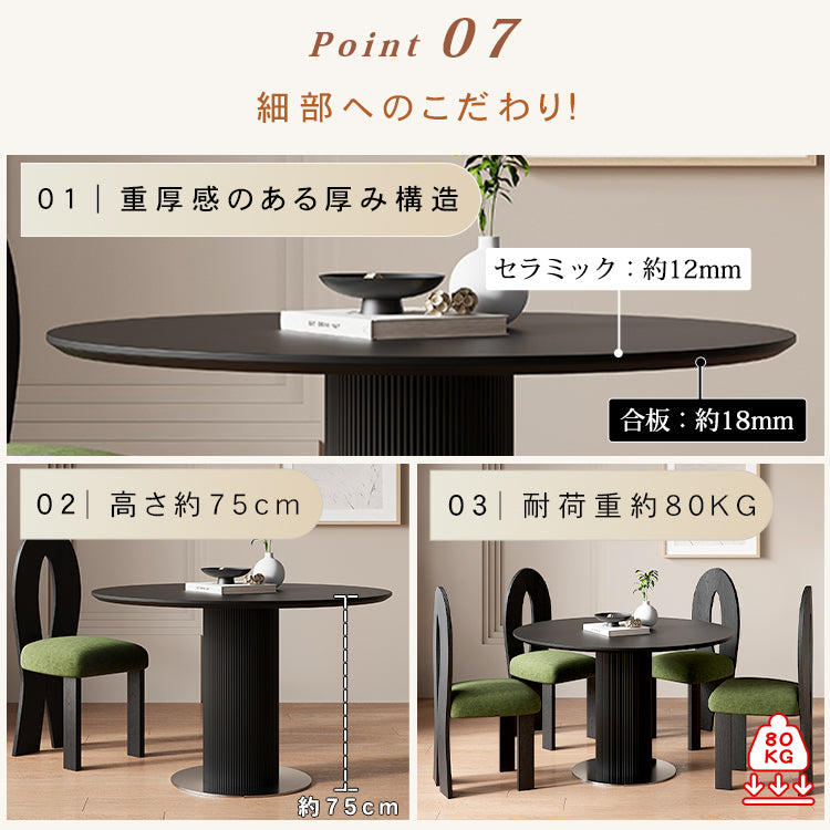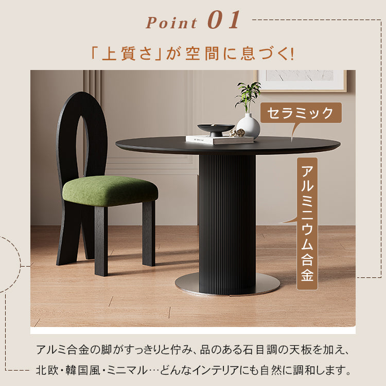 セラミック天板ラウンドテーブル フレンチデザイン ローマ柱 脚 モダンラグジュアリー ホワイト&ブラック hsgmy-5727