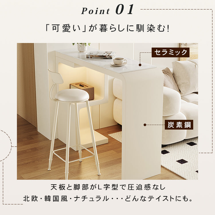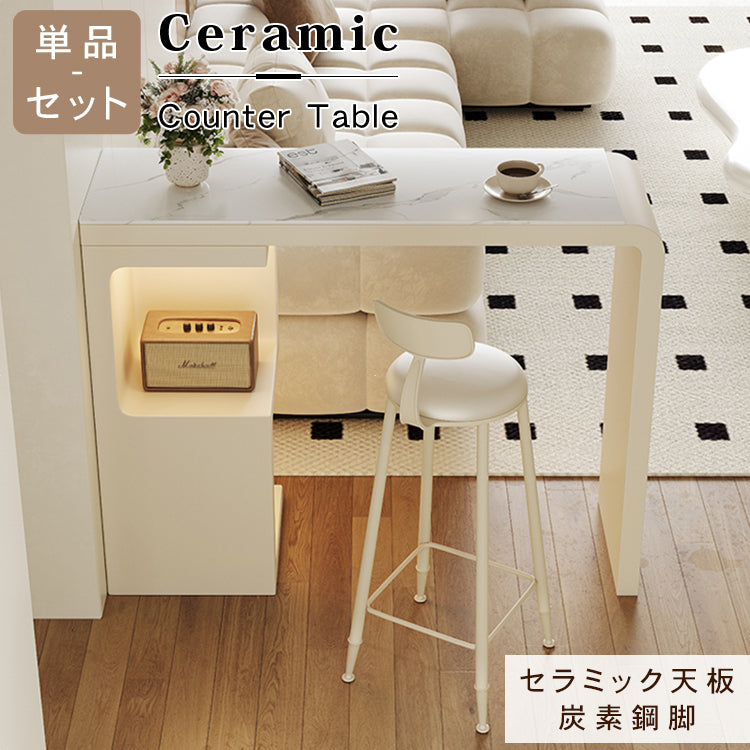クリーム風セラミック天板カウンターテーブル 長方形ハイテーブル リビングやキッチン向け hxh-5684