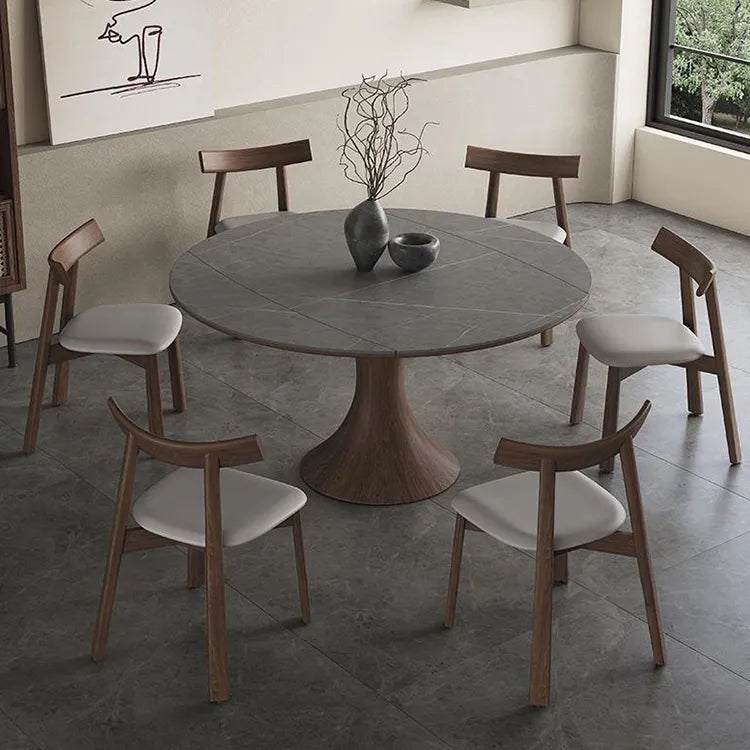 モダンデザインのオーク材×セラミックラウンドテーブルセット fjx-2681
