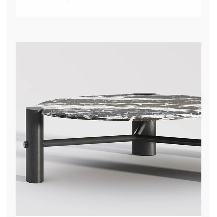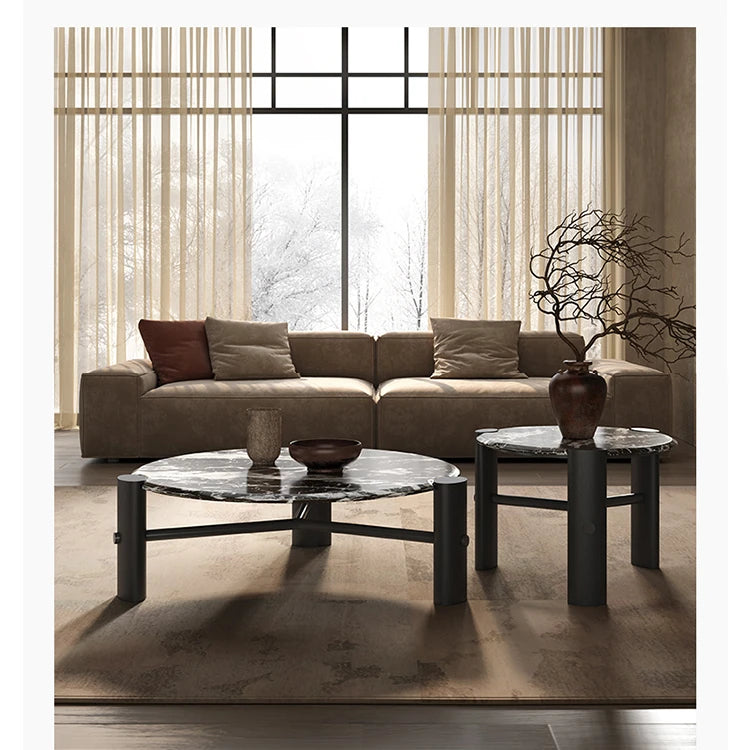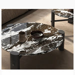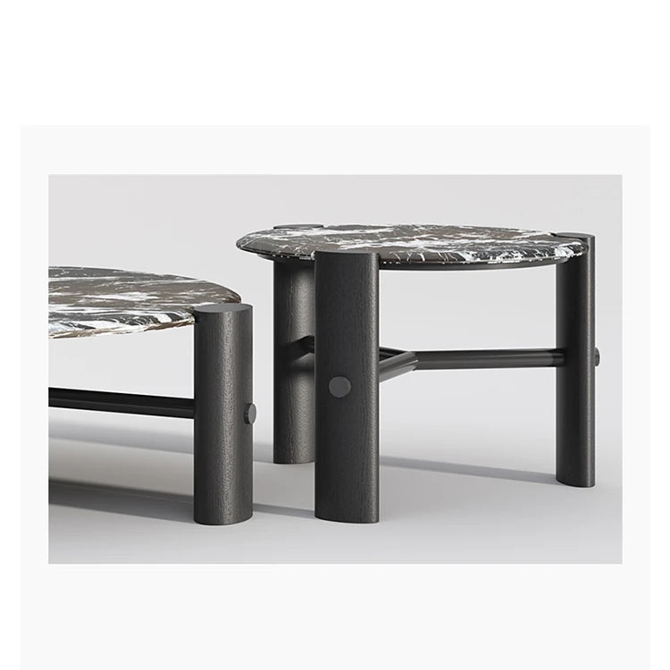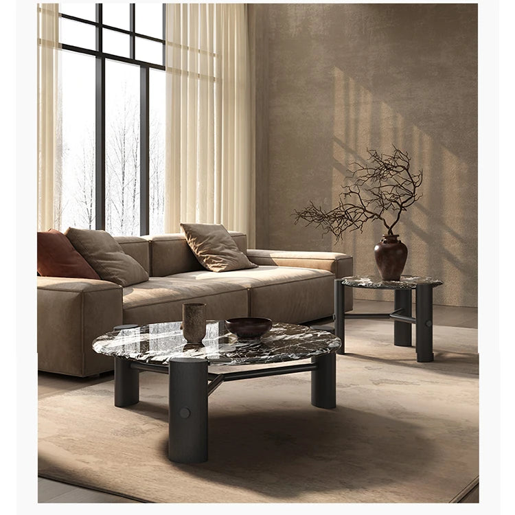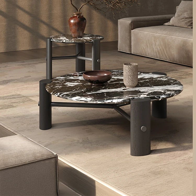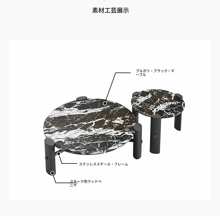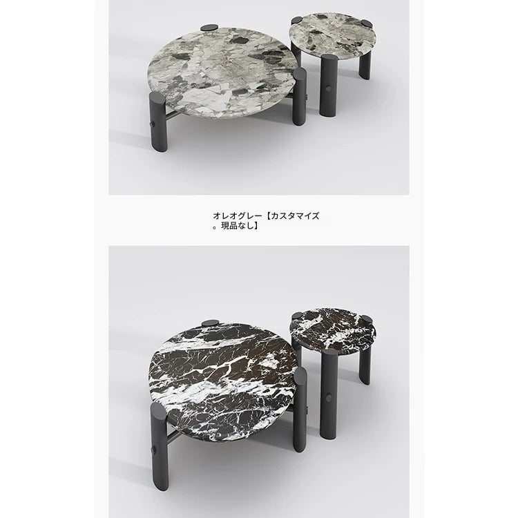 モダンデザインの無垢材ラウンドセンターテーブル | 大理石トップ & ステンレス脚 | リビングルームアイテム fhmj-5044