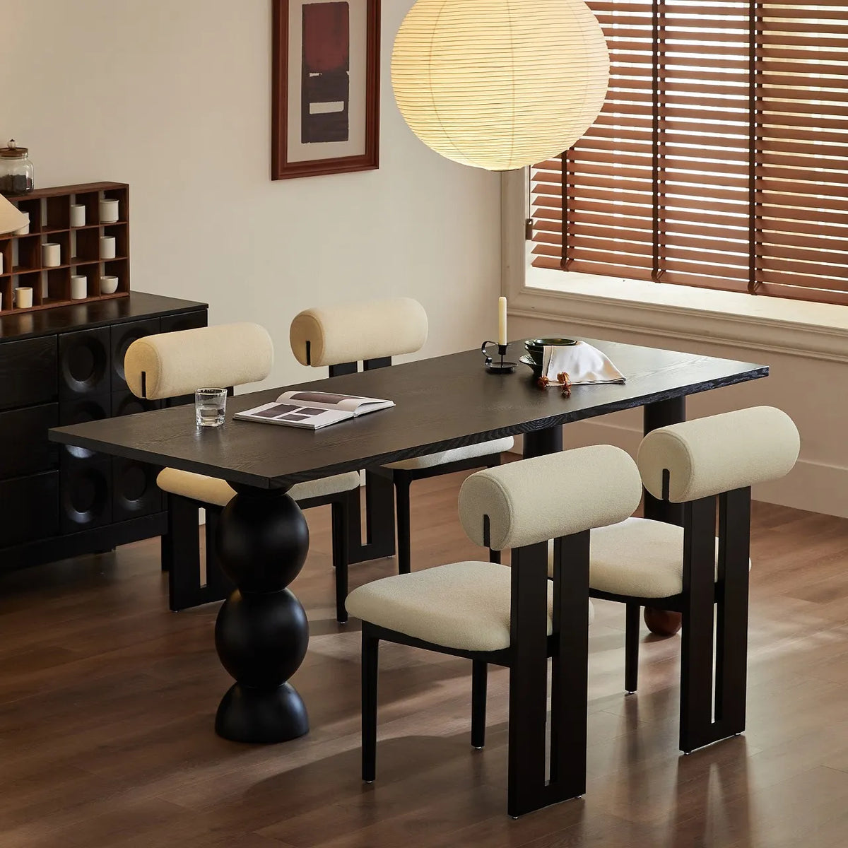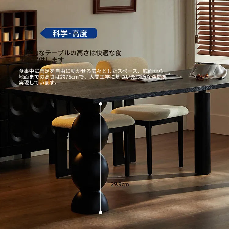 ブラック無垢材長方形ダイニングテーブル クラシックガドルレッグデザイン hjj-3653