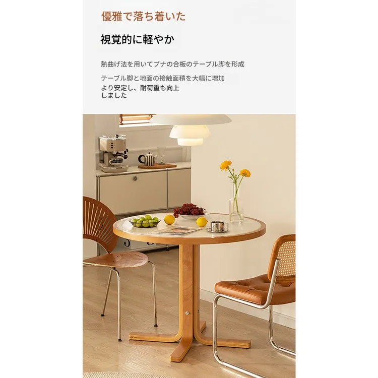 タモ無垢材セラミック天板ラウンドダイニングテーブルシンプル hjj-3666