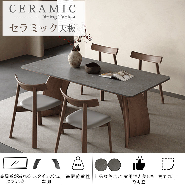 無垢材セラミック天板ダイニングテーブル 長方形 マット仕上げ イタリアンミニマルデザイン モダンシンプル hagst-5354