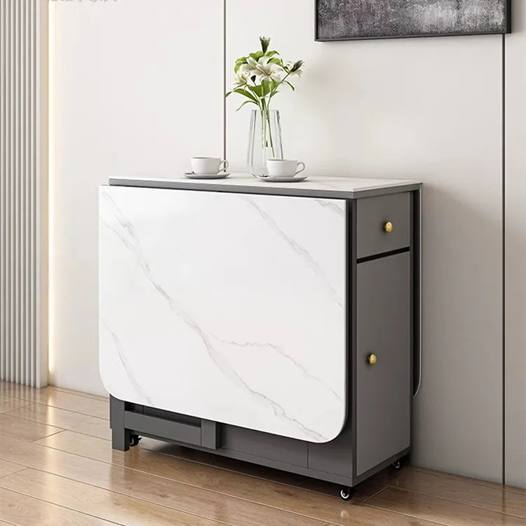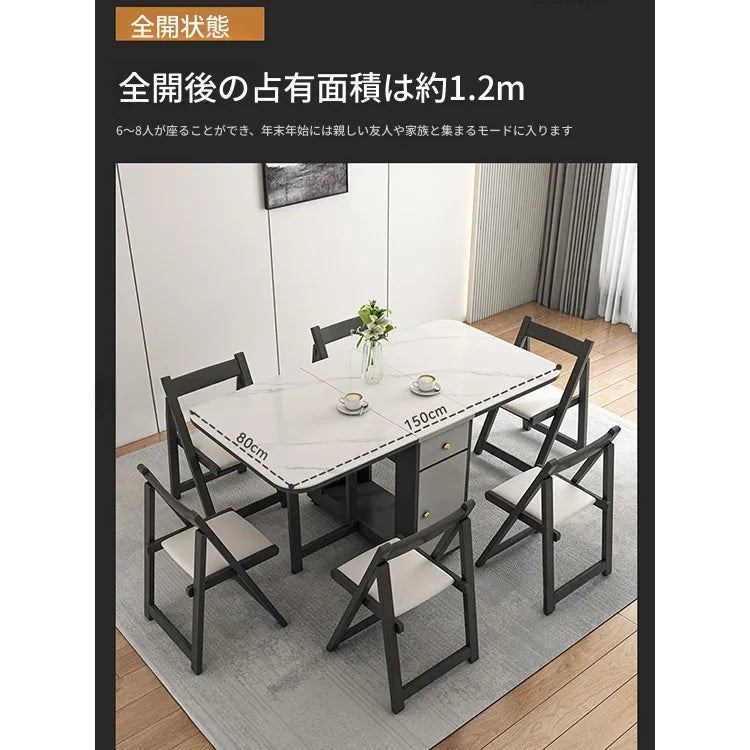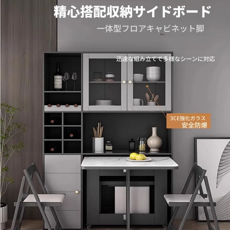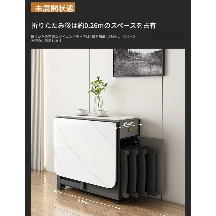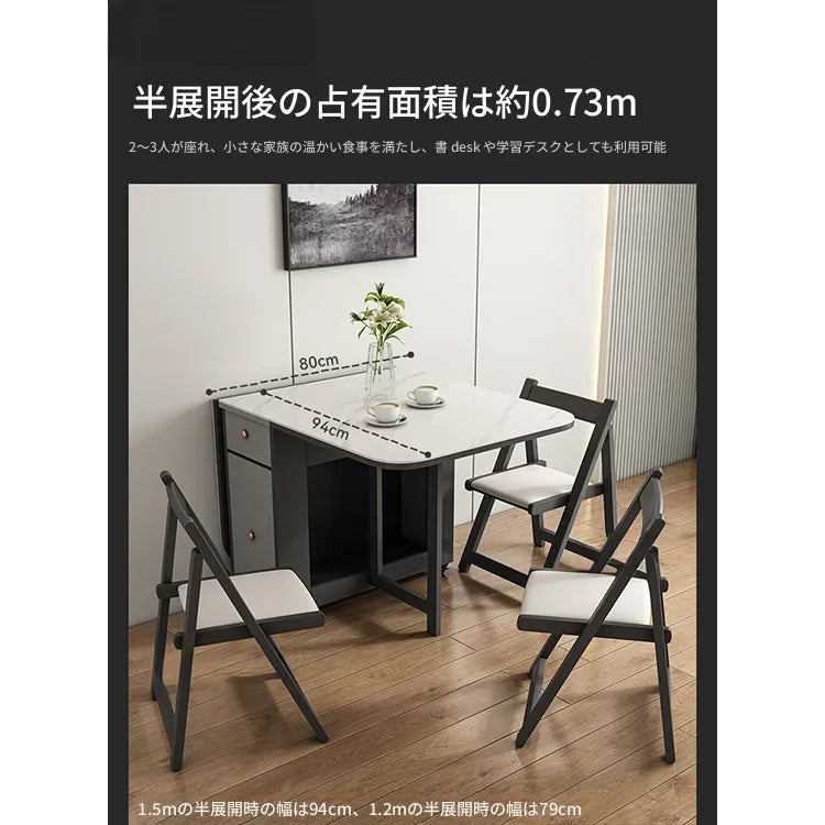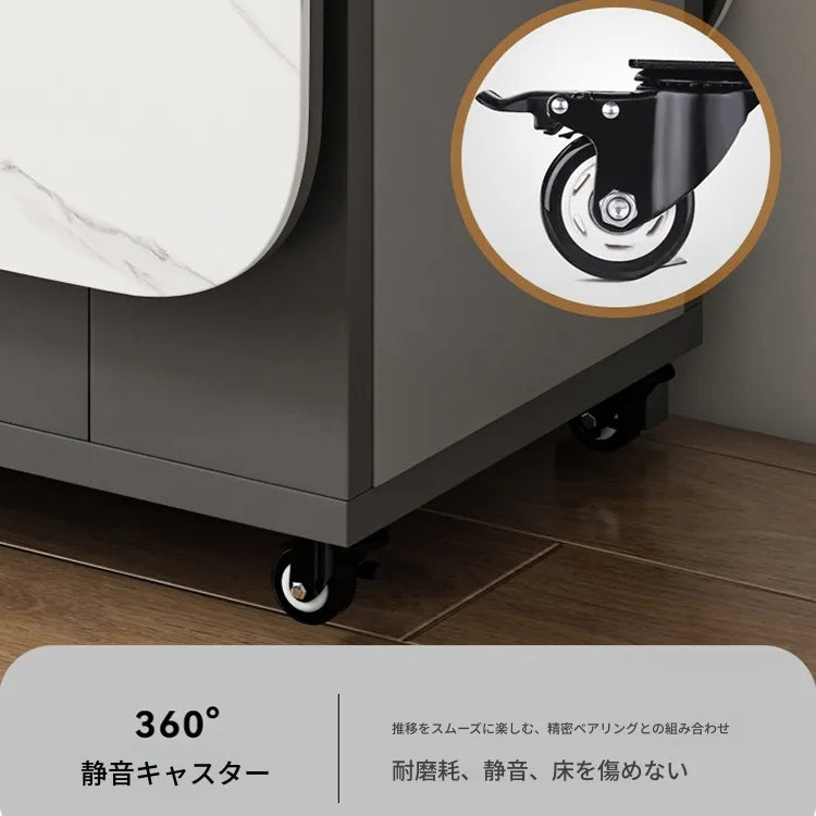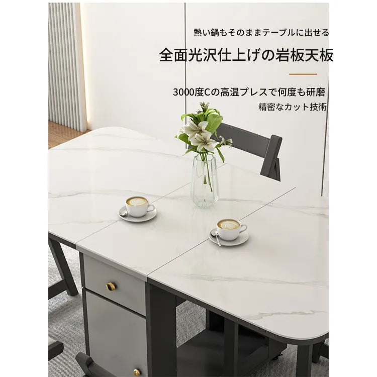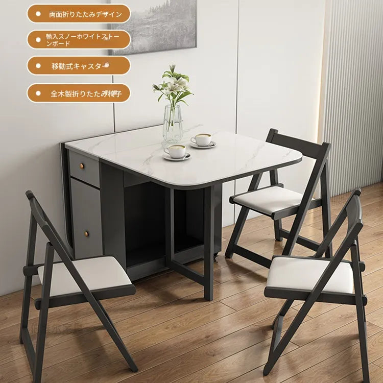 ホワイト無垢材クリーム調セラミック天板多機能折りたたみ移動式ダイニングテーブル hbwe-3463
