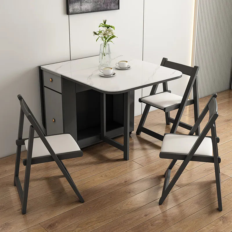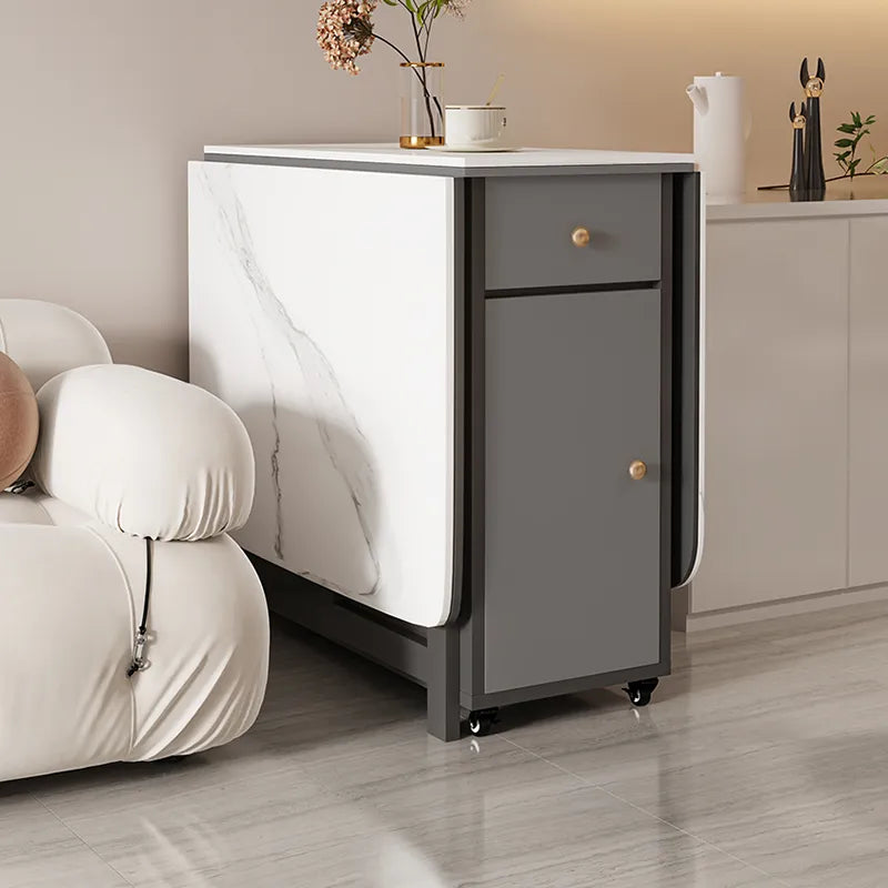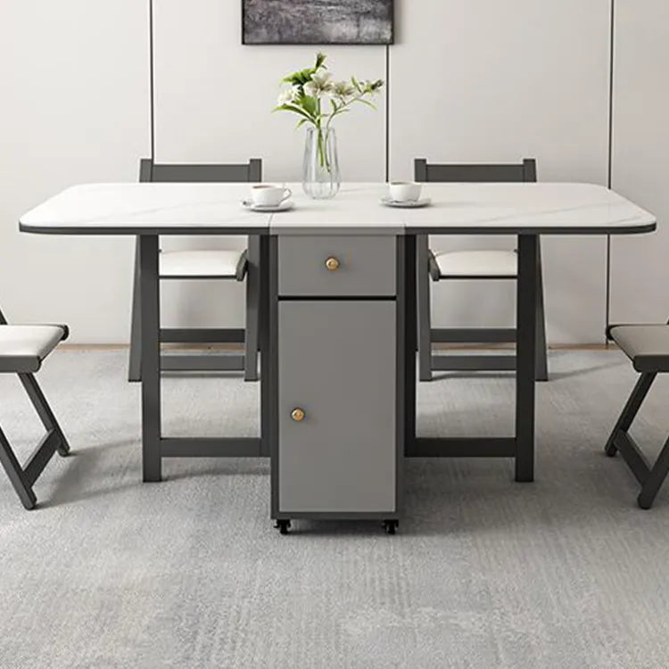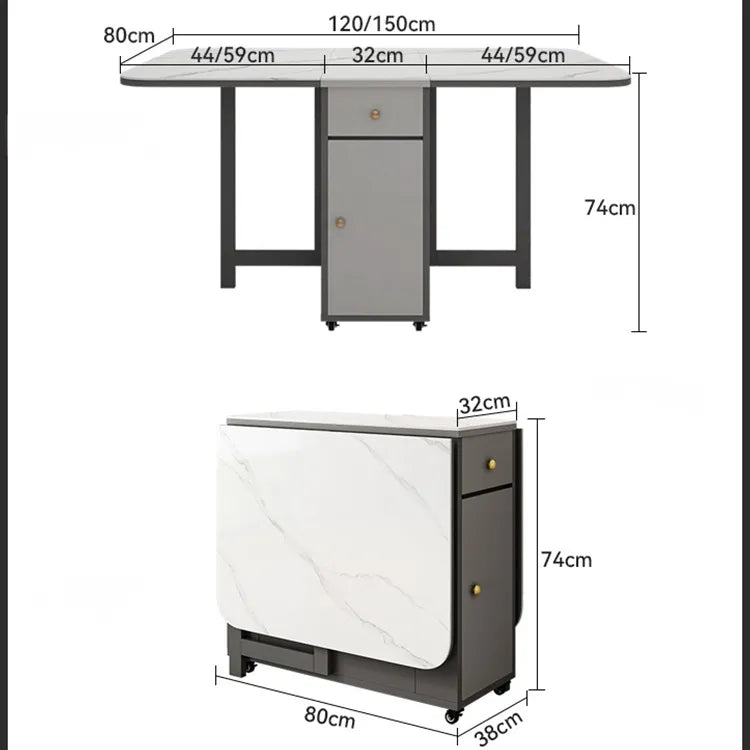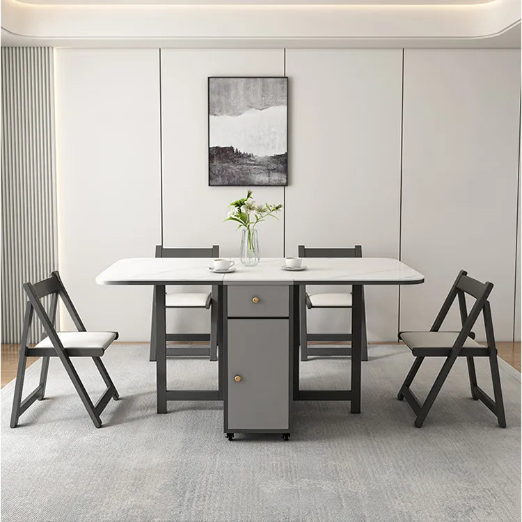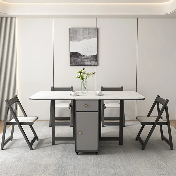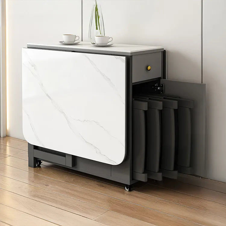 ホワイト無垢材クリーム調セラミック天板多機能折りたたみ移動式ダイニングテーブル hbwe-3463