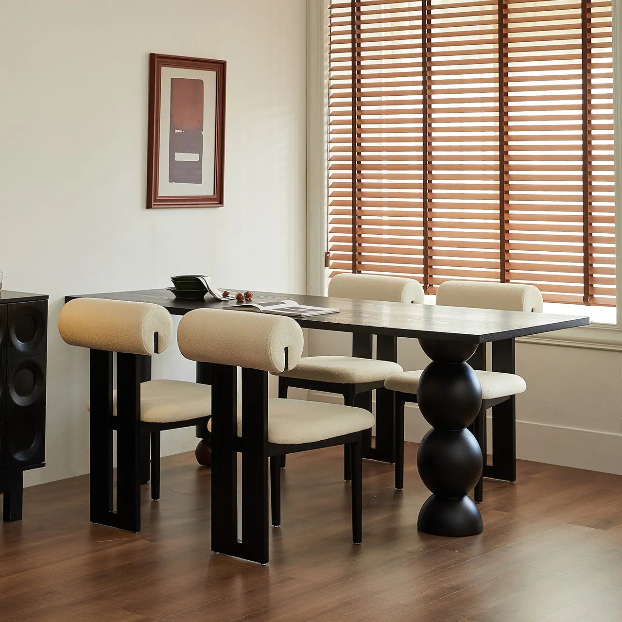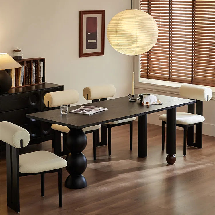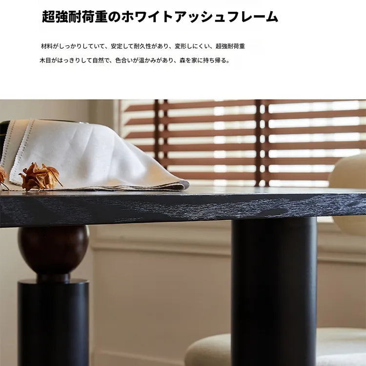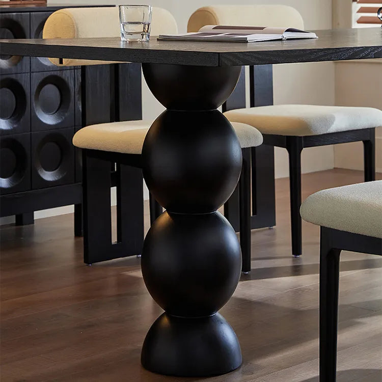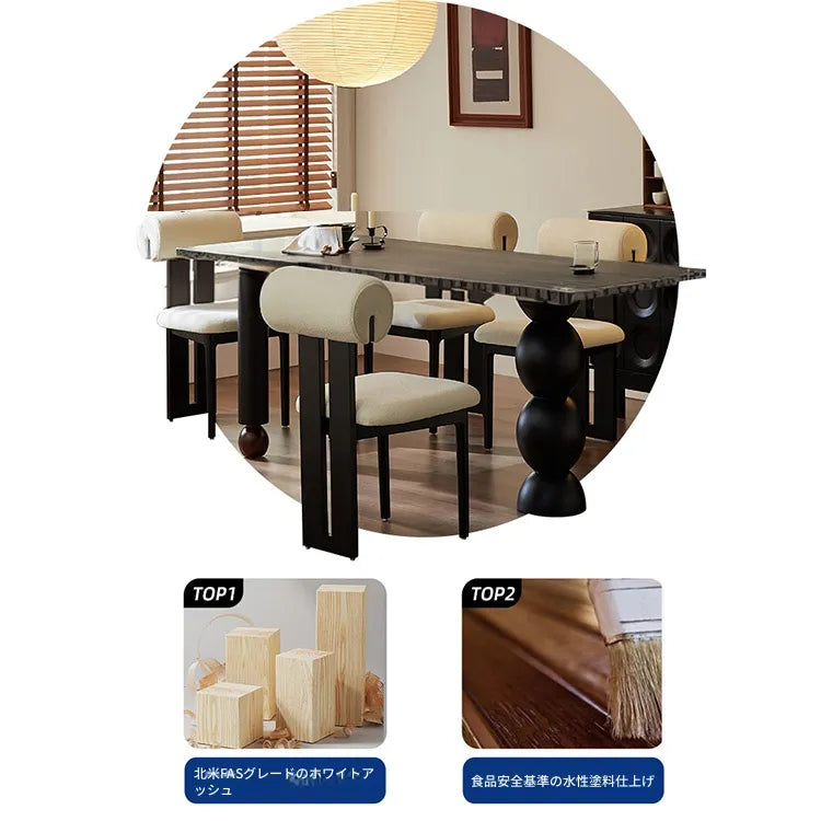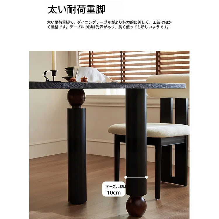 ブラック無垢材長方形ダイニングテーブル クラシックガドルレッグデザイン hjj-3653