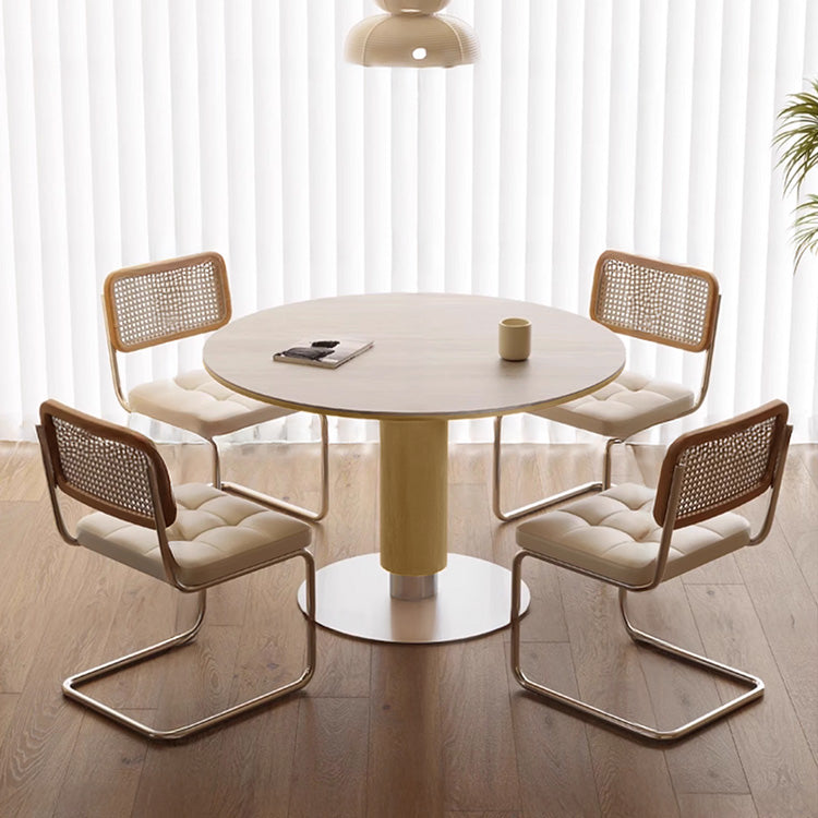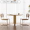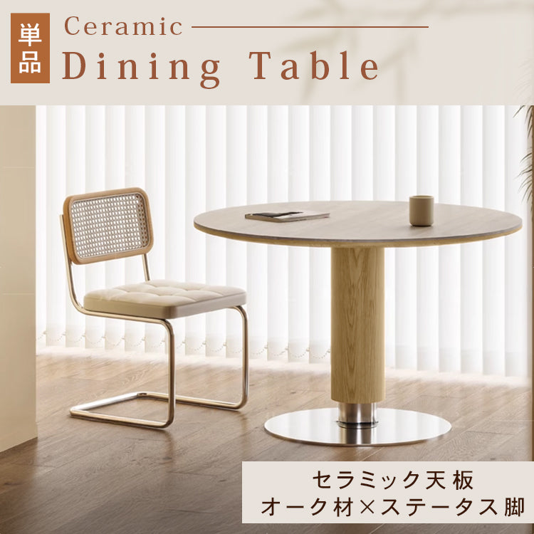 ナチュラル原木調 洞石風セラミック天板 円形ダイニングテーブル 小戸建て向け hjj-3671