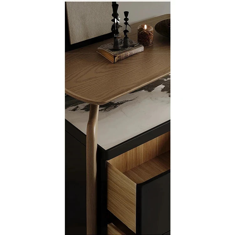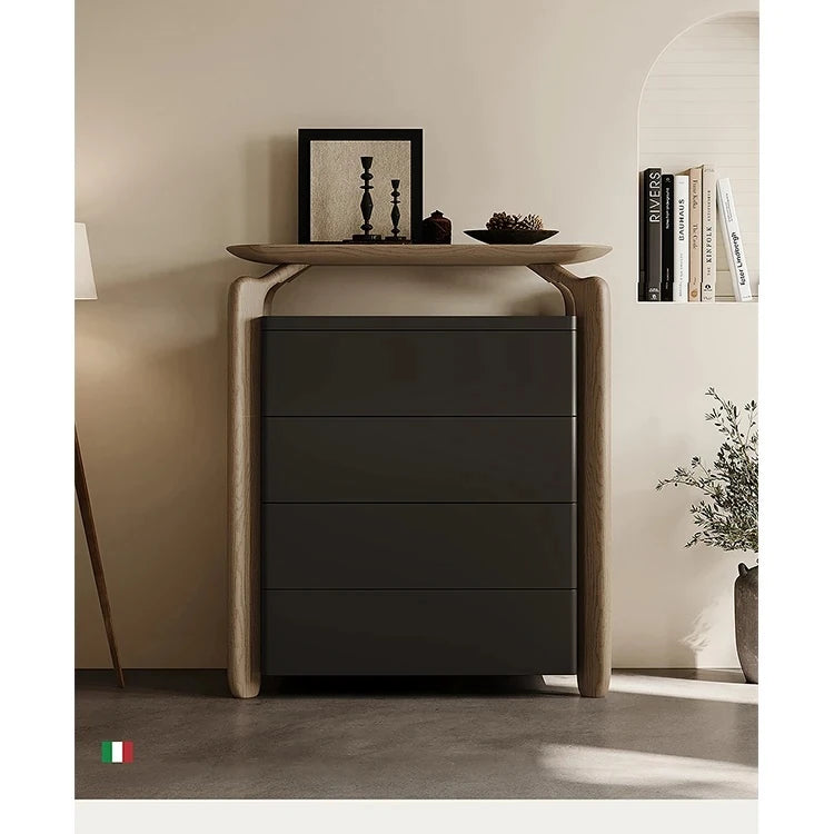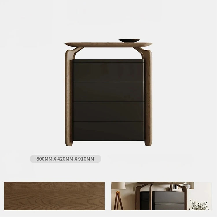 セラミック・パイン・ウォールナット製キャビネット | モダンデザインの4段収納家具 | インテリアにぴったり 収納力抜群 fjd-4741