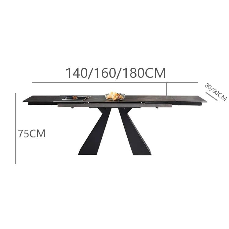 ダイニングテーブル おしゃれ セラミック 伸縮 ブラック 炭素鋼脚 140×80 160×80 180×90 140×90 160×90cm 4人用 6人用 モダン 長方形 食卓 fjx-2669