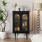 エレガントなケヤキ多層板ガラスのキャビネット|高級感溢れるデザイン収納家具 fmsjj-4207