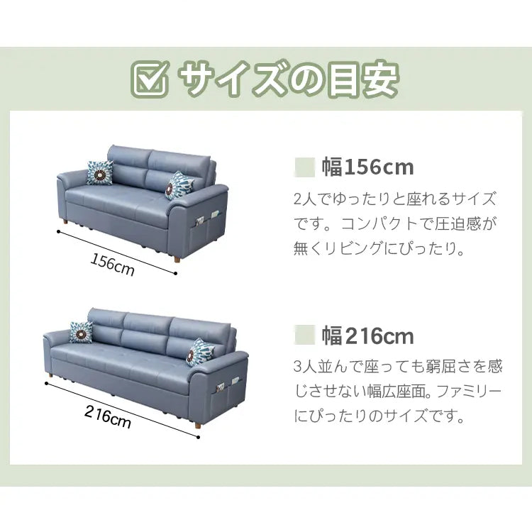 - ブルー / 幅216cm 収納無し