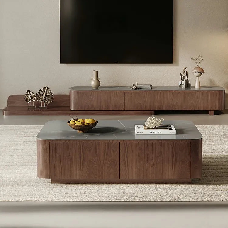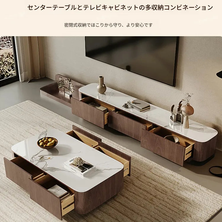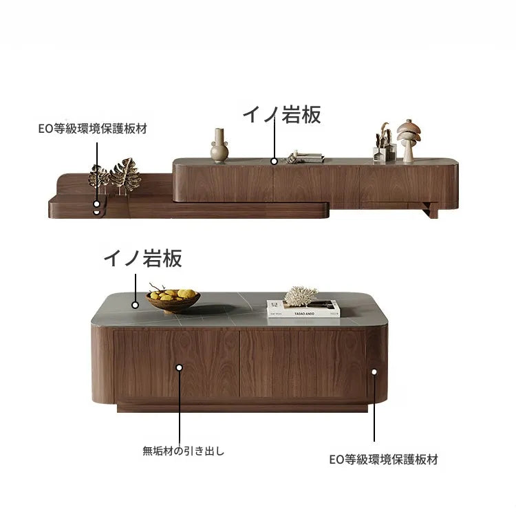 無垢材伸縮式テレビボード 木目調 セラミック天板 ロータイプデザイン hlwy-3695