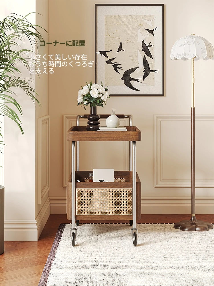 スタイリッシュな木製カート | 無垢材・樹脂・ステンレス製 | おしゃれな収納と移動便利なデザイン hsms-4906