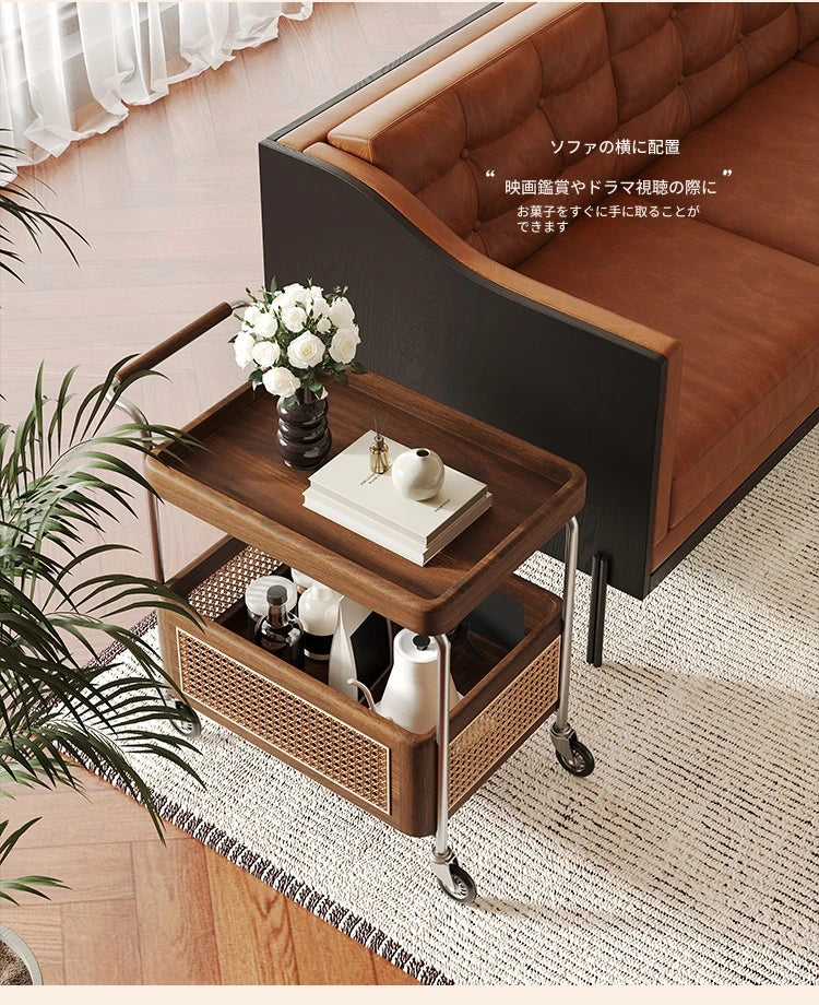商品特徴 | 高品質の無垢材を使用したカートは、耐久性抜群で長くご使用いただけます。あなたのインテリアに自然の温もりを加えます。 ステンレス製のハンドルは、エレガントなデザインでありながら、しっかりとした握り心地を実現。移動もスムーズで使い勝手抜群です。 下段にはカゴ型収納を備え、雑誌や小物をスッキリ収納。収納力を兼ね備えたスタイリッシュなカートです。 リビング、ダイニング、ホームオフィスなど、どんなシーンにもマッチするさまざまなスタイルに対応。おしゃれなアクセントを加えます。 樹脂製のトレイは、掃除も簡単でお手入れも楽々。生活感を感じさせない洗練されたデザインです。 このカートを使えば、パーティーやおもてなしのシーンでも大活躍。友人との楽しいひとときを演出します。 |