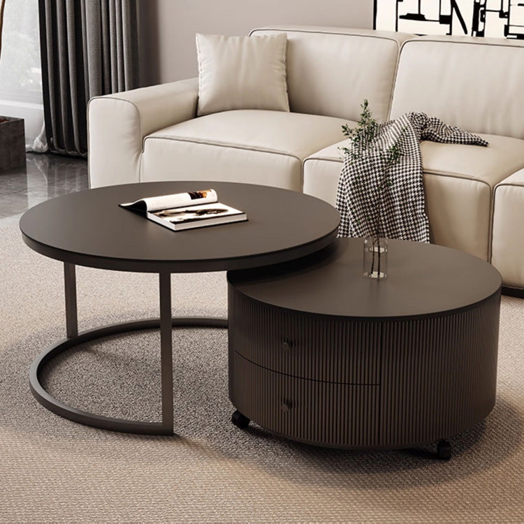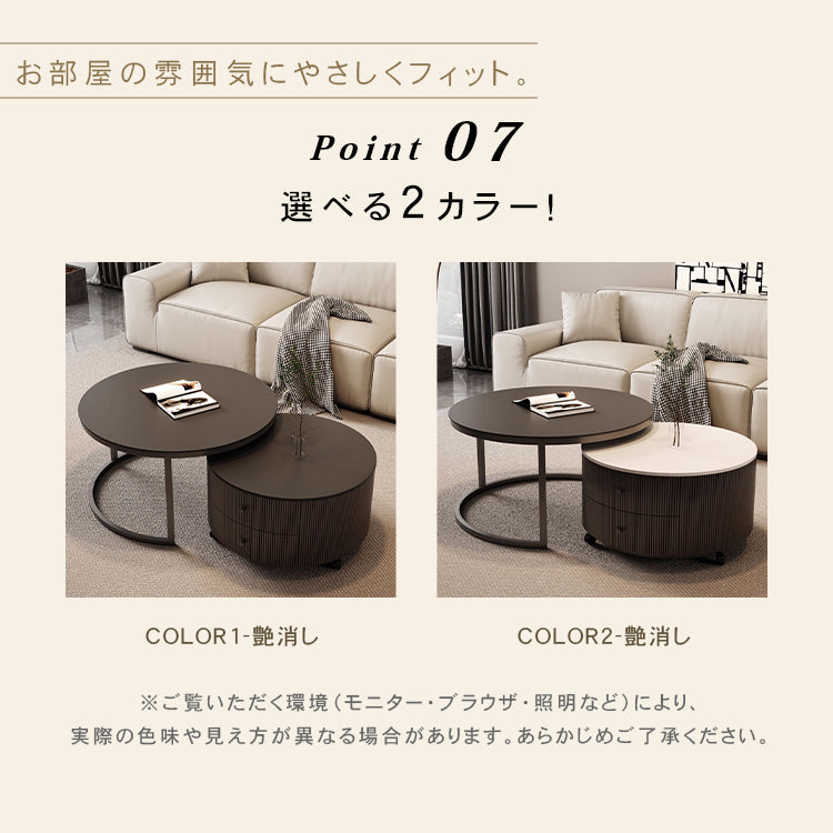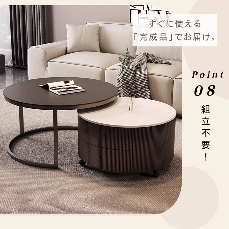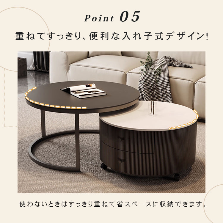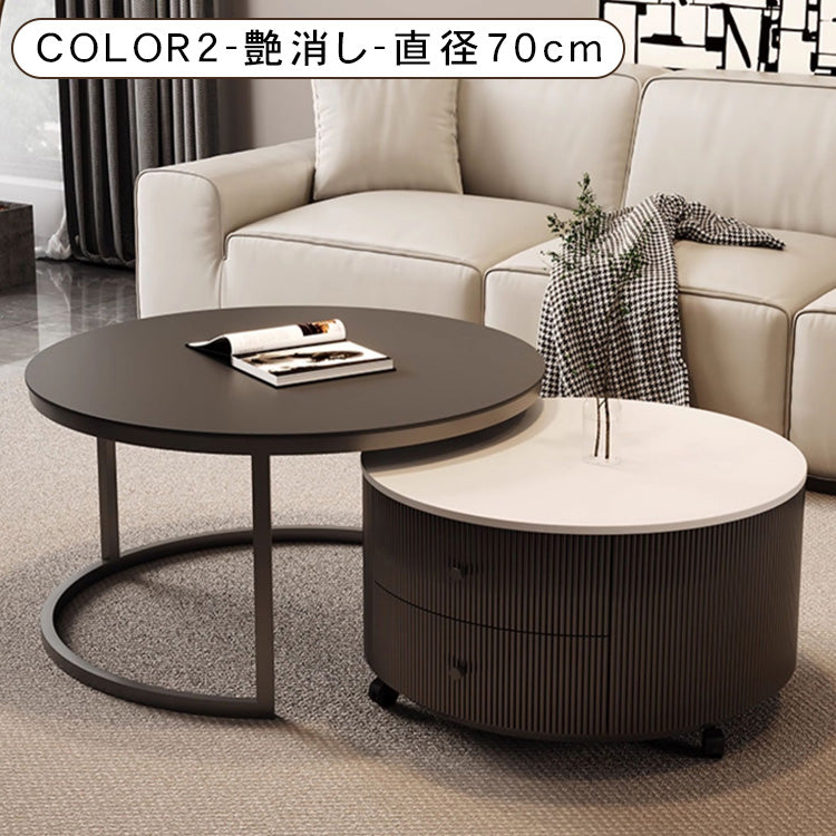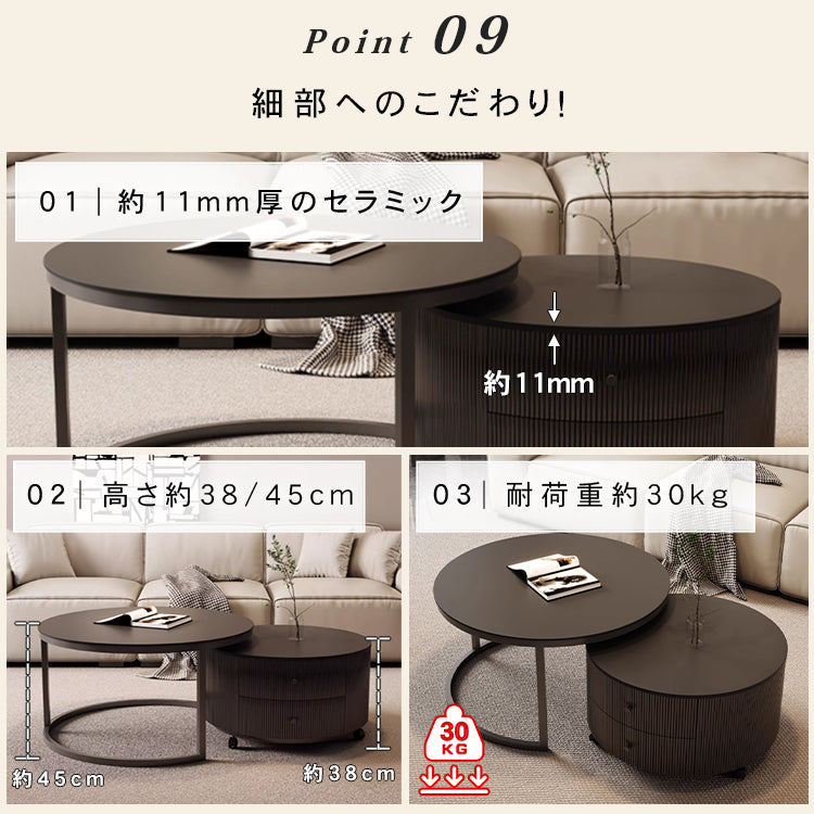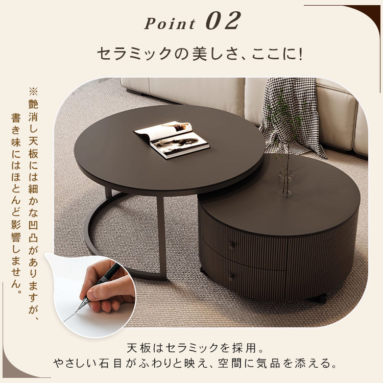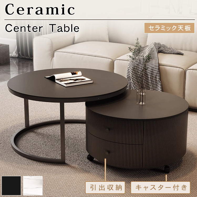 モダンブラックのセラミック天板センターテーブルセット リビングに映える高級ローテーブル+収納付きサブテーブル htyjj-6598