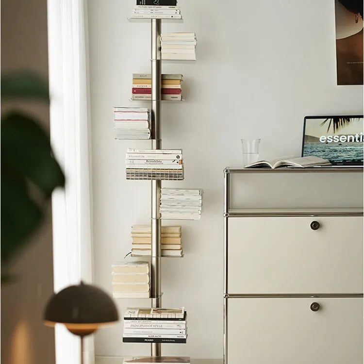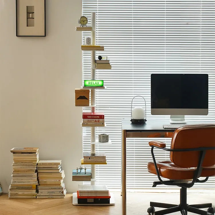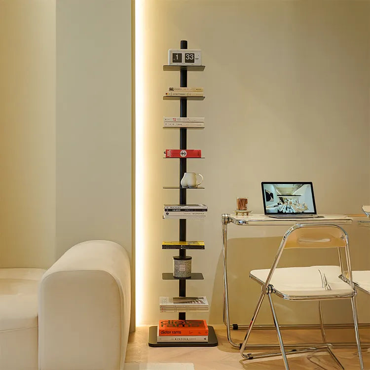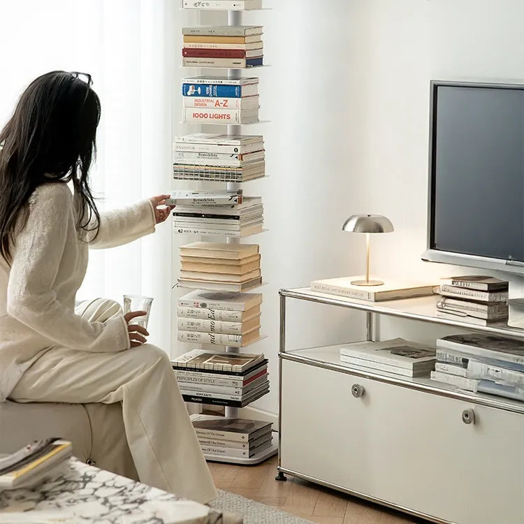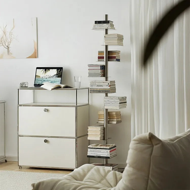 回転式インビジブル本棚 フロアタイプ アイアン製収納ラックhuf-3806