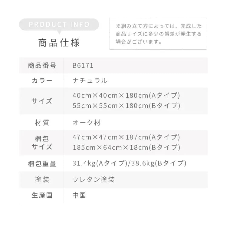 幅 40.0cm×奥行き 40.0cm×高さ 180.0cm   31.4kg