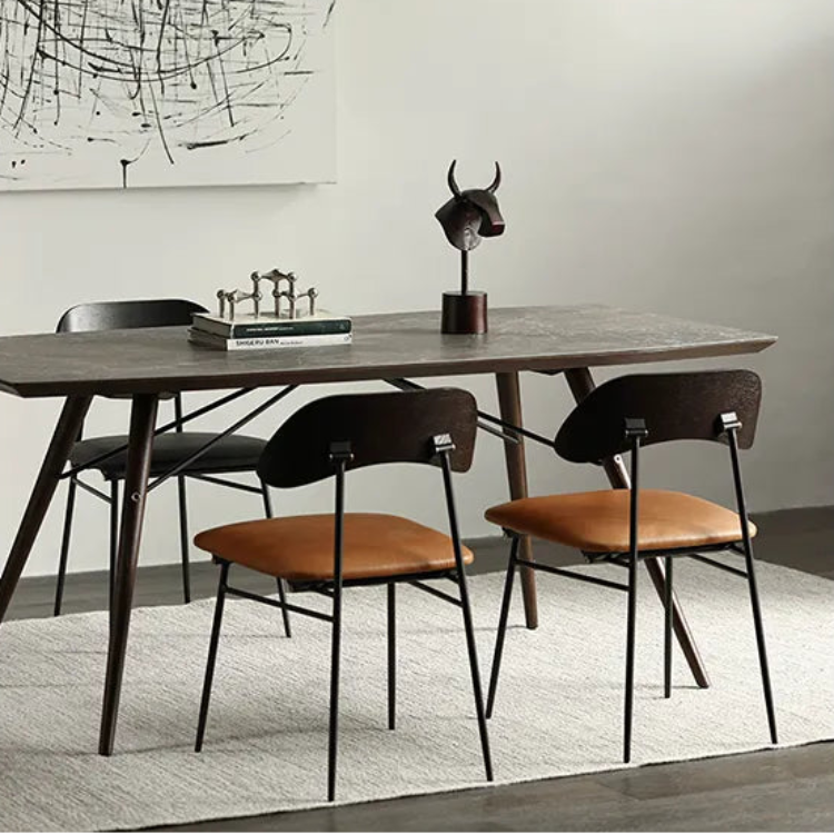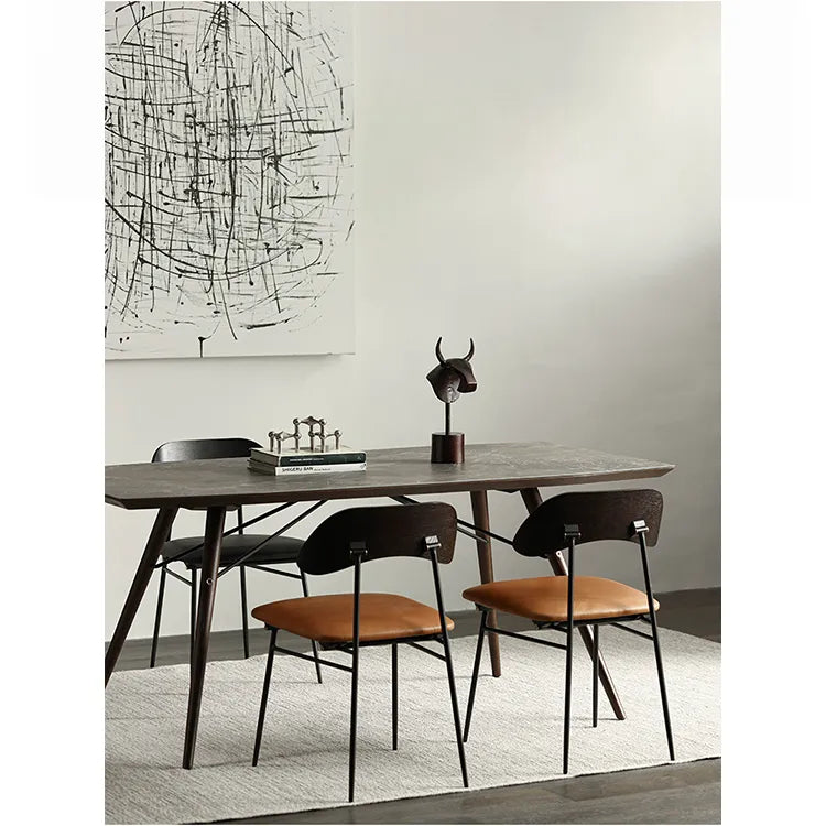 北欧ヴィンテージインダストリアル無垢材PUレザーダイニングチェア fsz-3306