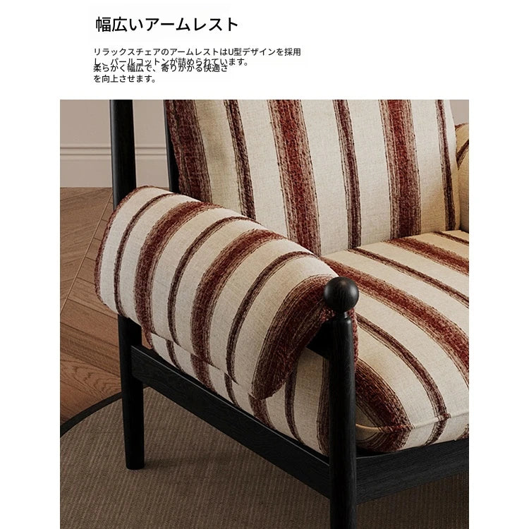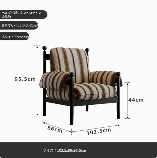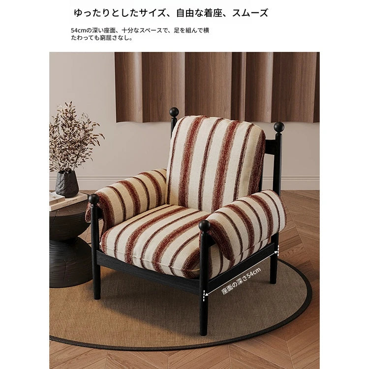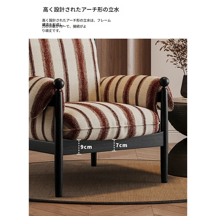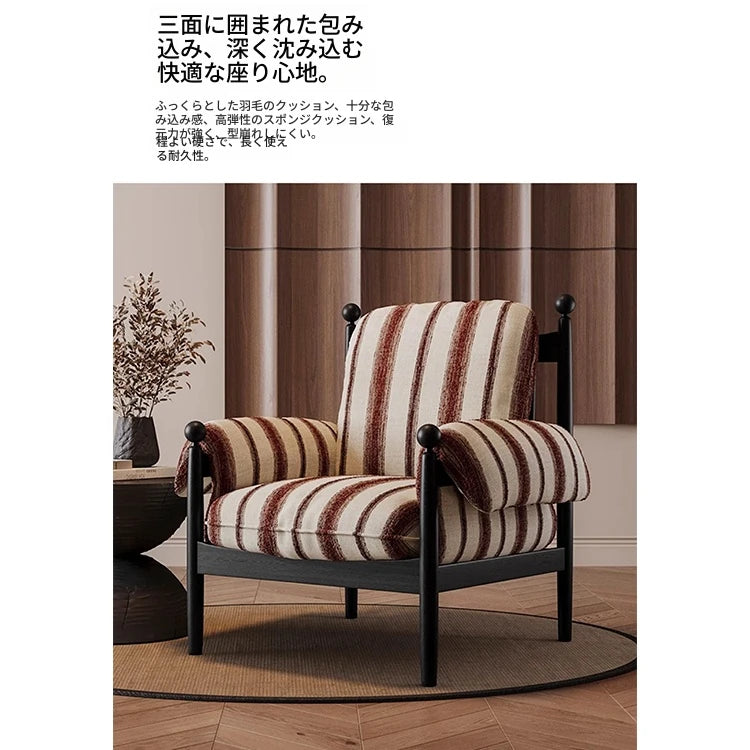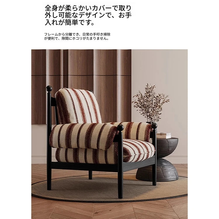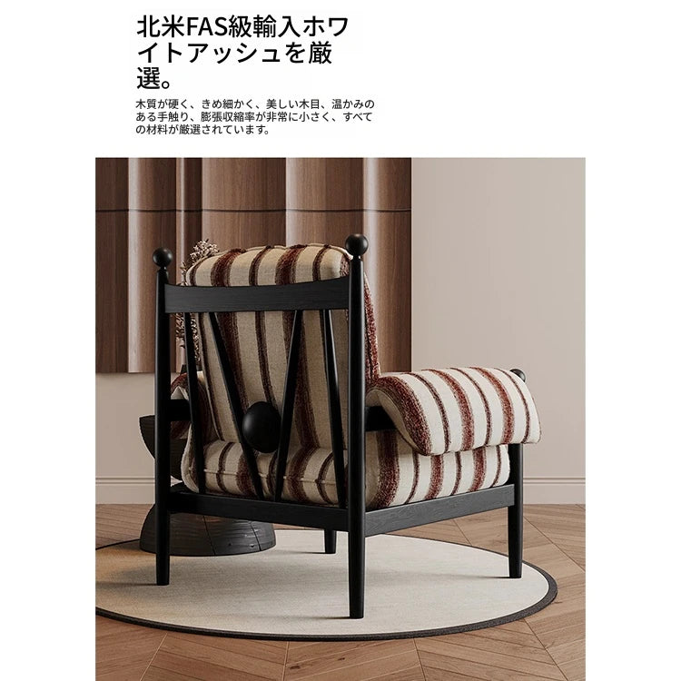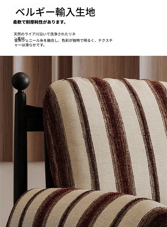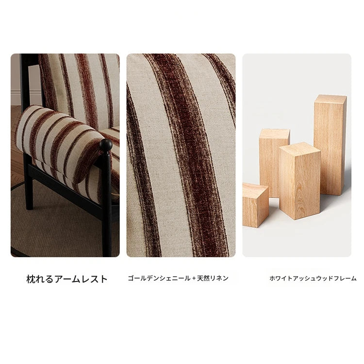 アッシュ材使用のストライプデザイン・シェニールチェア|ホワイトグースダウンクッション付き・リビングルーム用 fxmj-3053