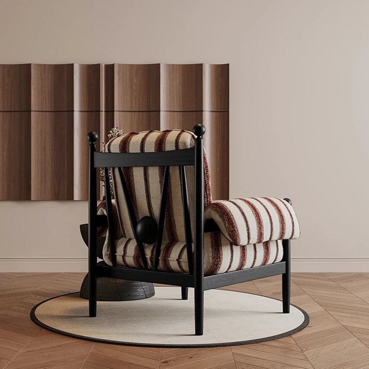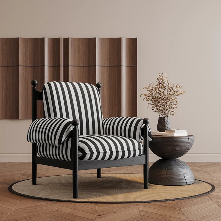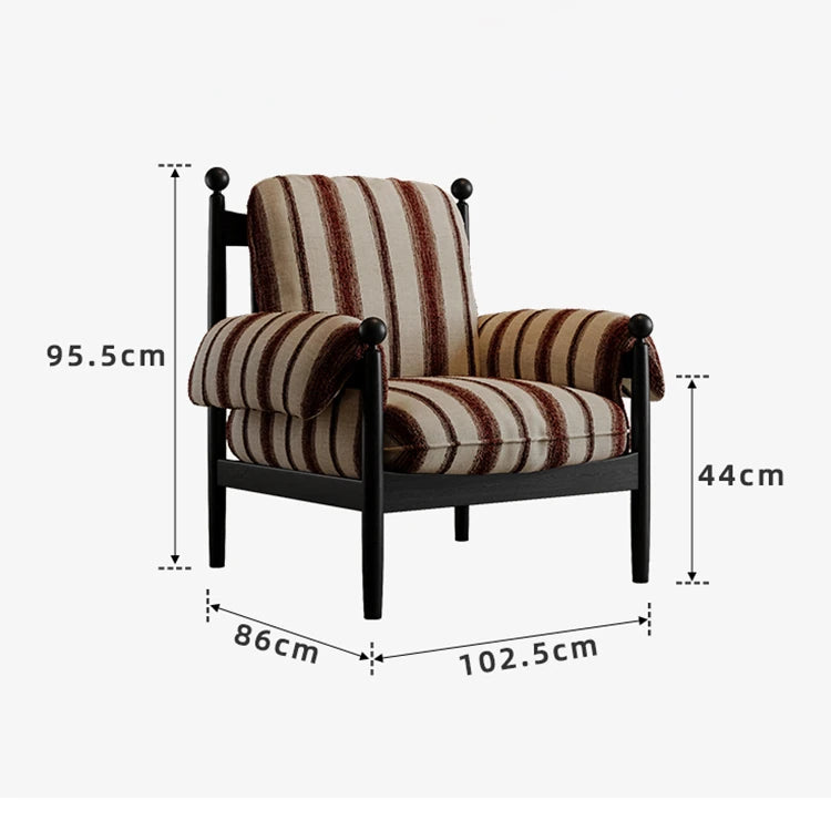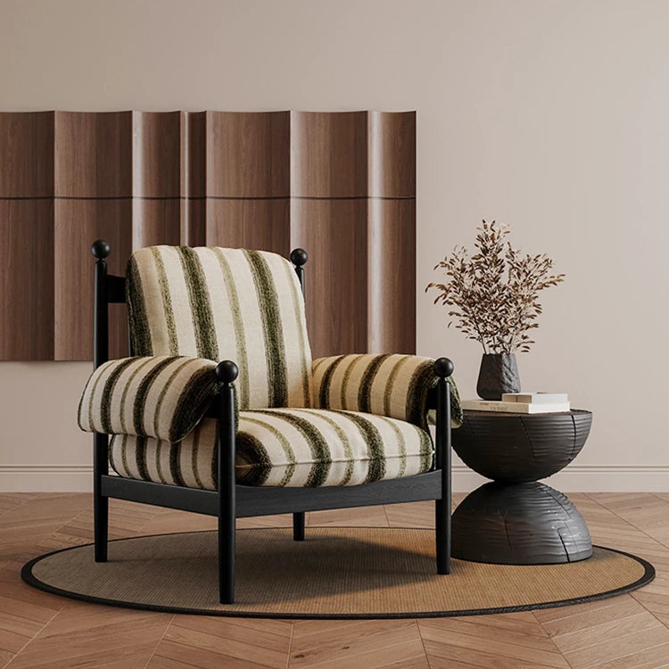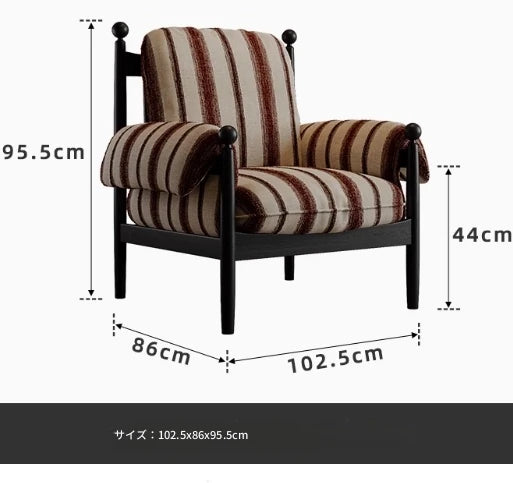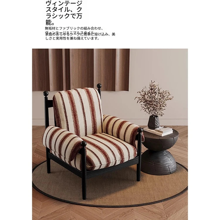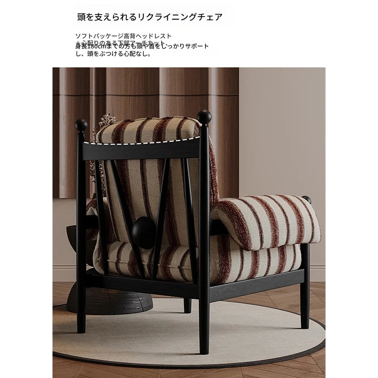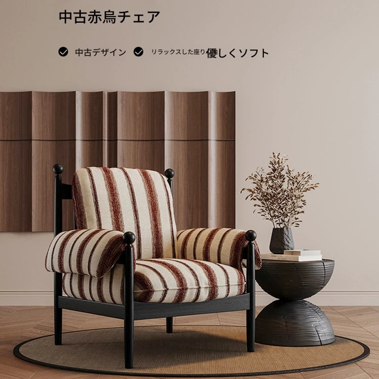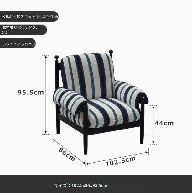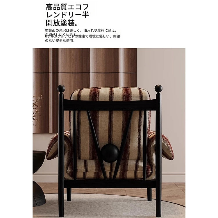 アッシュ材使用のストライプデザイン・シェニールチェア|ホワイトグースダウンクッション付き・リビングルーム用 fxmj-3053