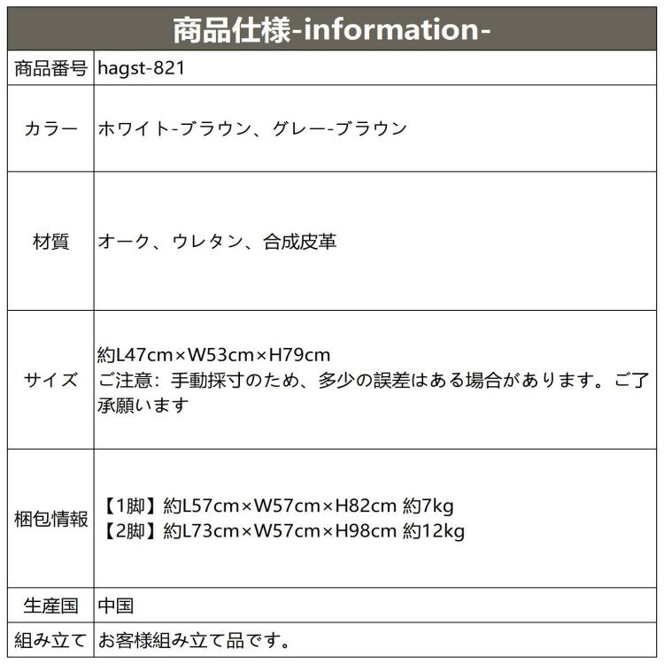 オーク材使用の高級チェア 合成皮革シート付き 北欧風デザイン hagst-821