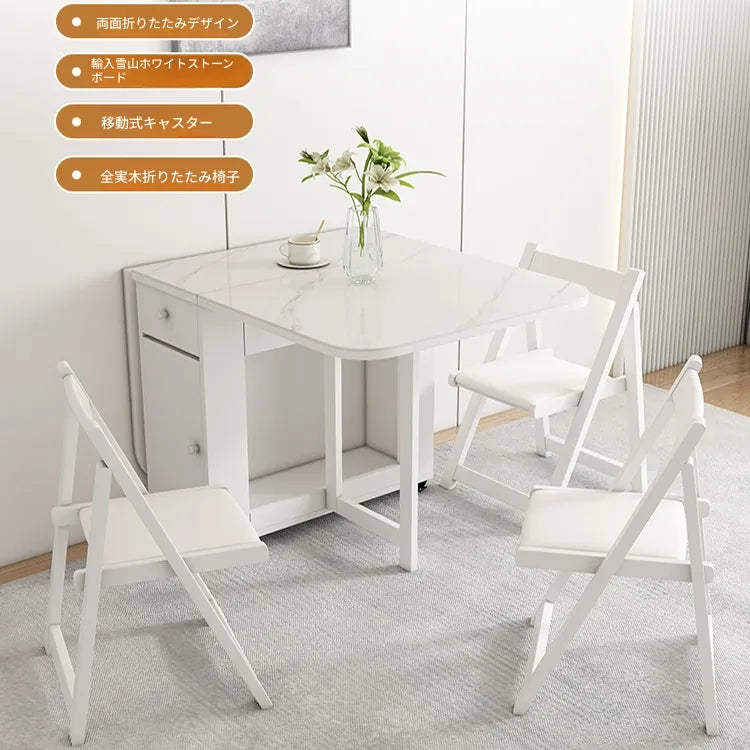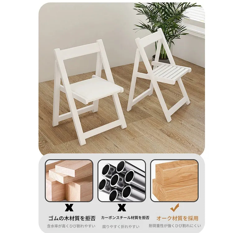 ホワイト無垢材クリーム調多機能移動式折りたたみダイニングチェア hbwe-3467-ch