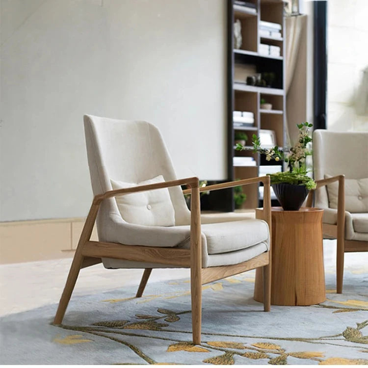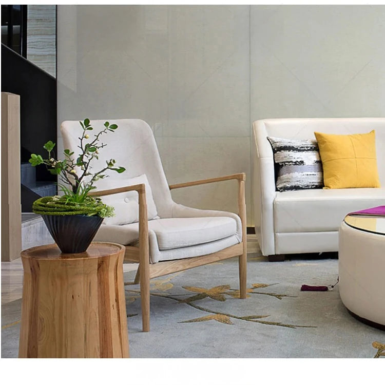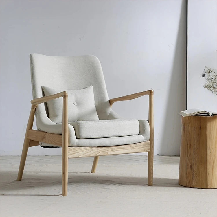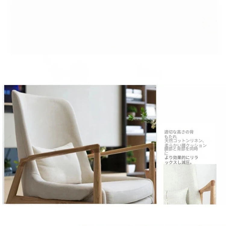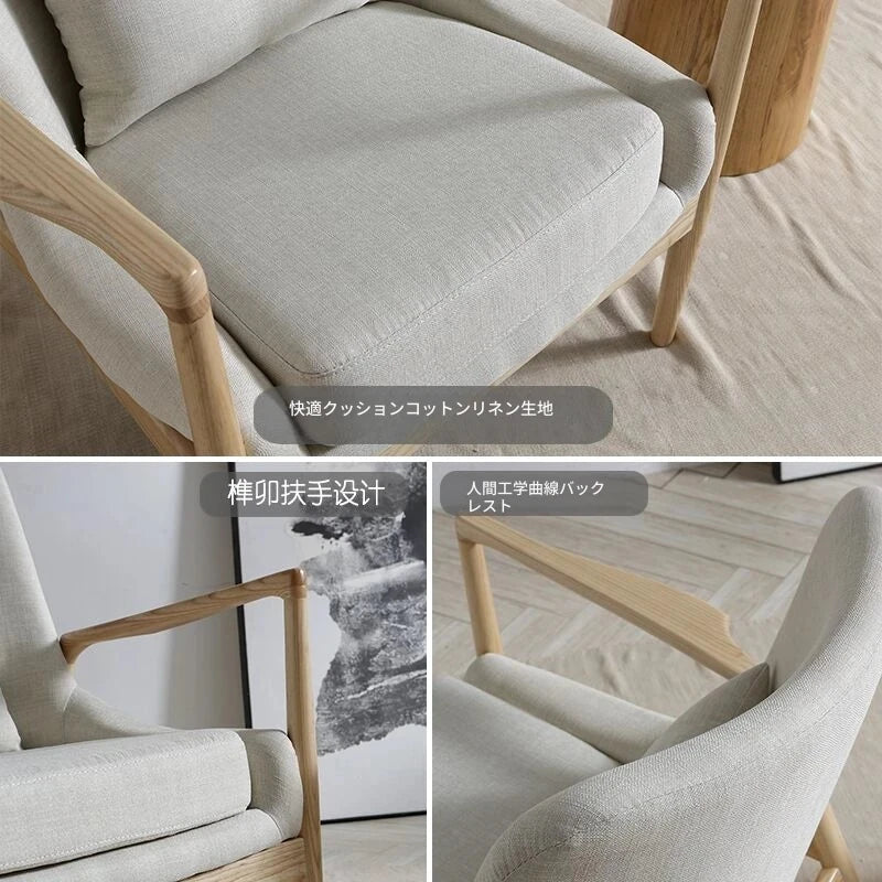 アッシュ材のモダンチェア|綿麻ファブリックの快適リビング用ソファチェア|おしゃれなインテリアに最適 hmr-4775