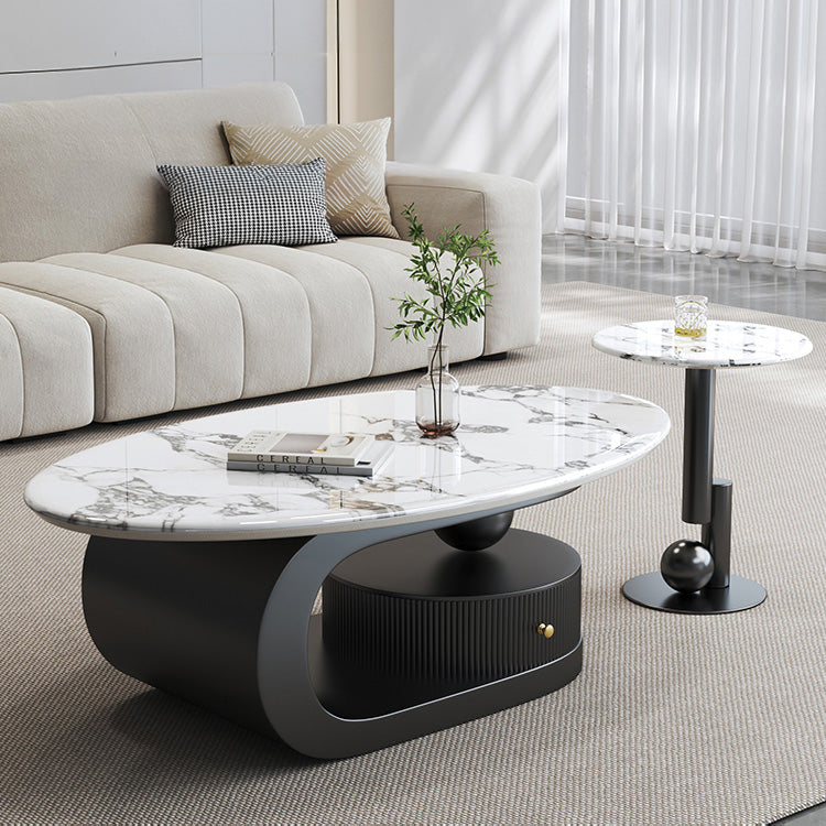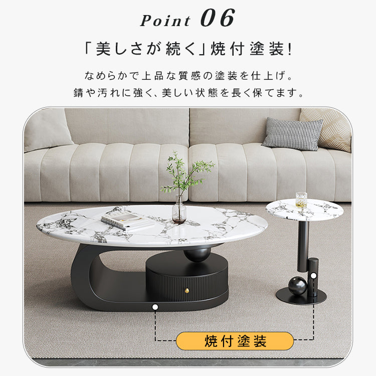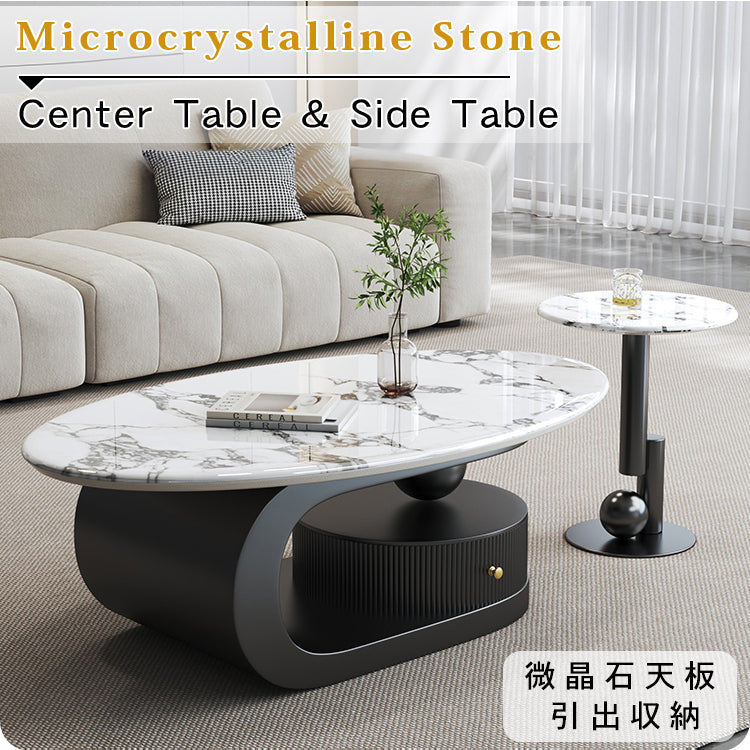 マイクロクリスタルストーン天板センターテーブルセットリビングを彩るオーバルローテーブル+サイドテーブルのモダンスタイル htyjj-6574