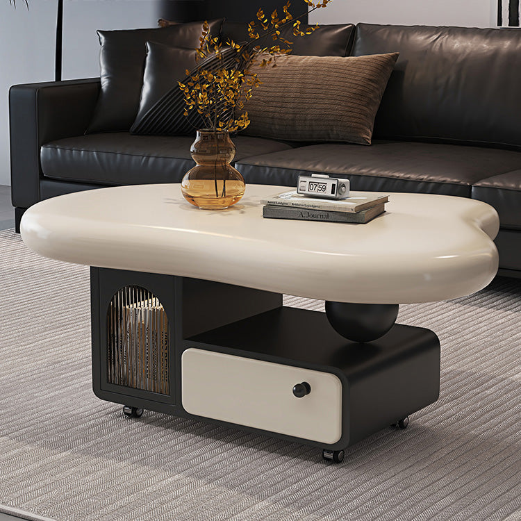 有機フォルムのモダンセンターテーブルリビング用 収納付きローテーブル ブラック×アイボリー htyjj-6584