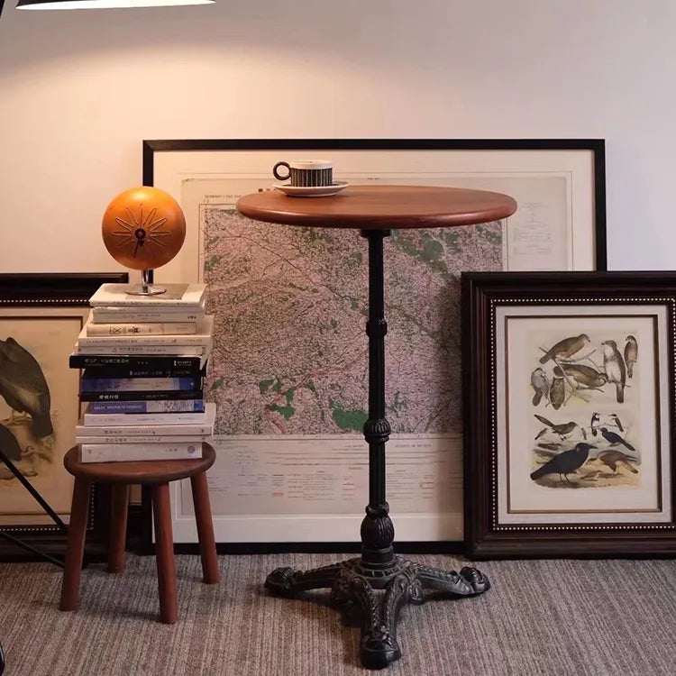 チェリーウッド丸型サイドテーブル小型ダイニングテーブルアイアン脚フレンチスタイル htysd-3174