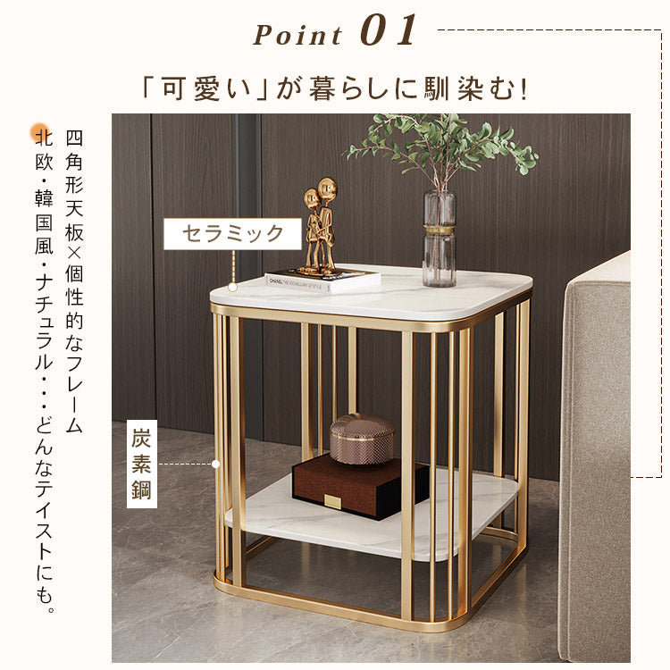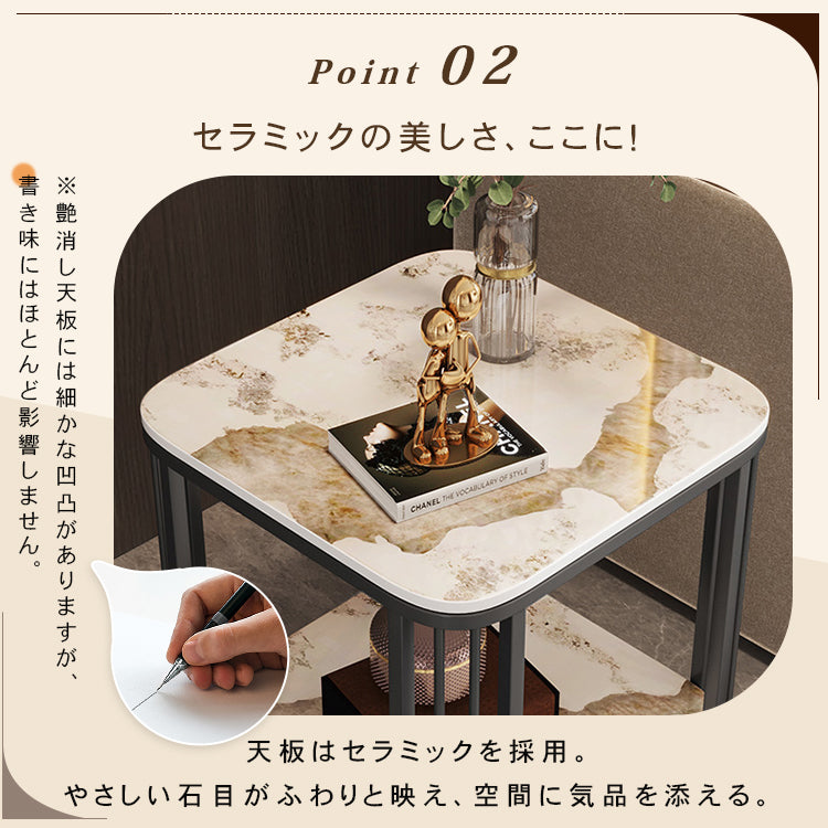 アイボリートーンのモダンセンターテーブルリビング向け セラミックストーン天板×大容量収納ローテーブル hykg-5856
