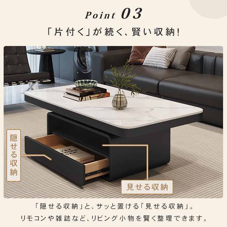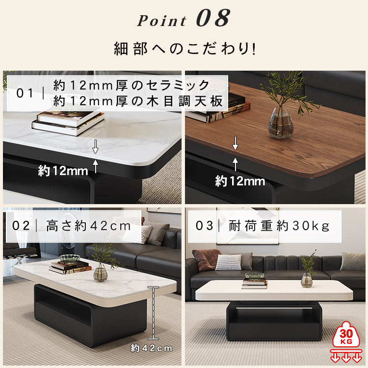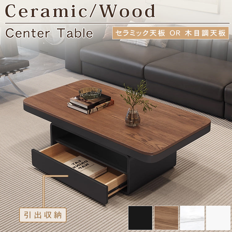 セラミック天板センターテーブル リビング用 モダンデザインの高級ローテーブル収納付き hykg-5860
