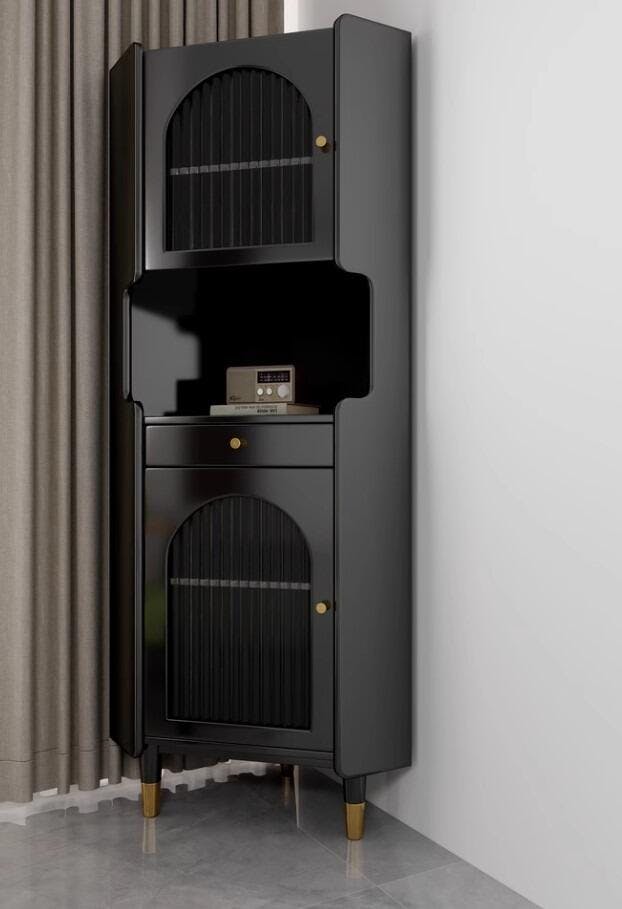 アッシュ材キャビネット 銅ガラスのエレガントデザイン | 高級感あふれる収納家具 hlxl-4403