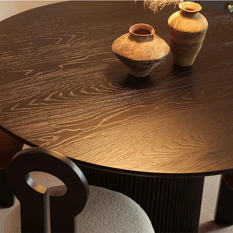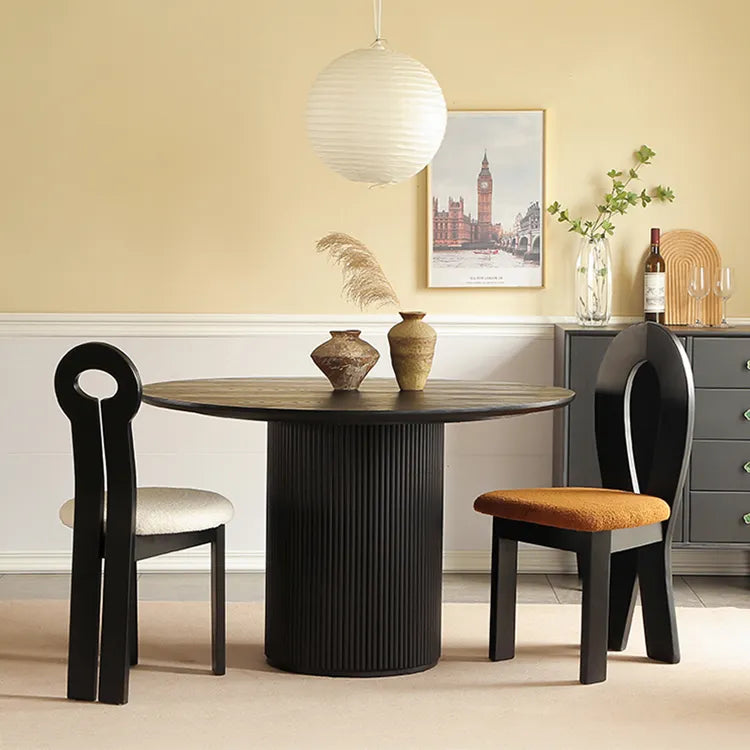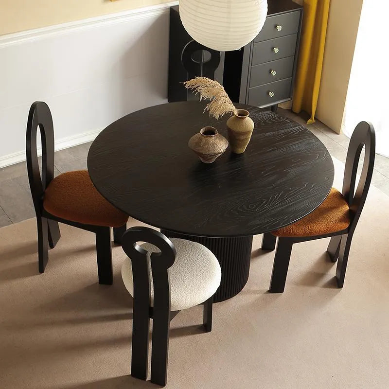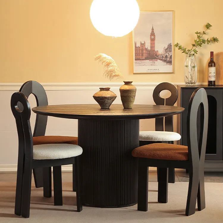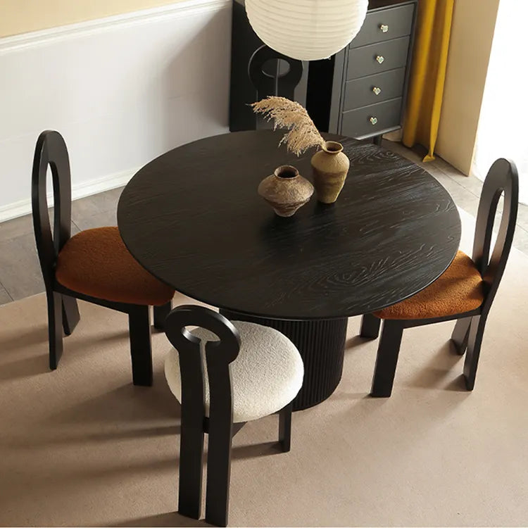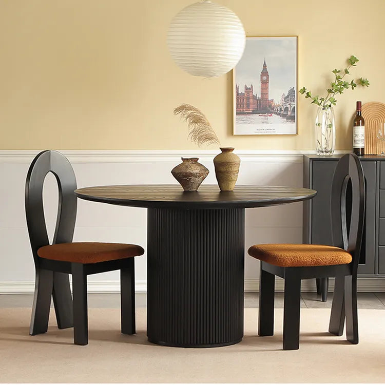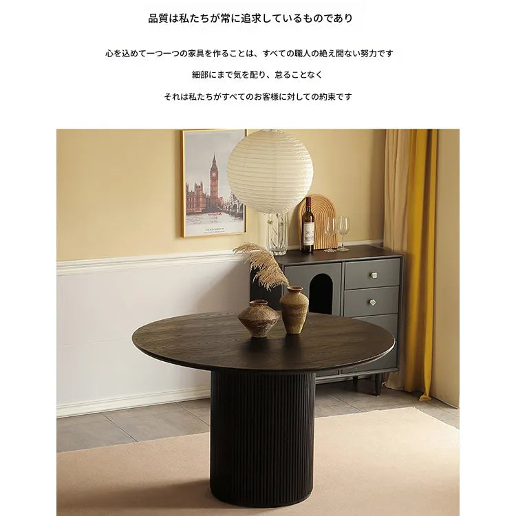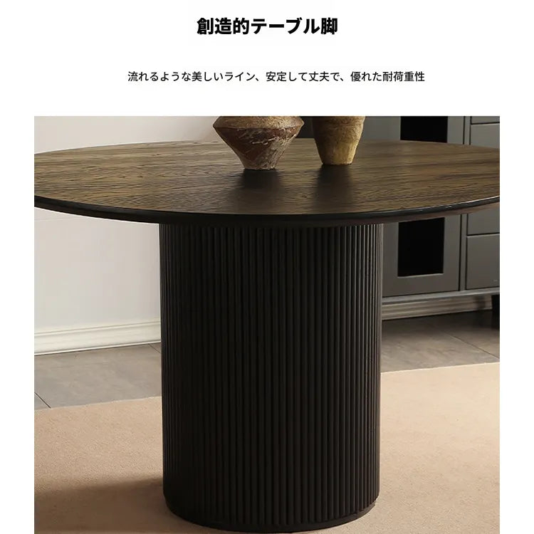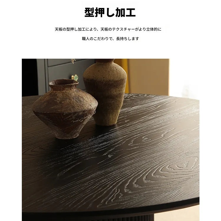 フレンチヴィンテージ円形ダイニングテーブル純黒高級感無垢材 fymxc-3580
