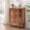 無垢材とガラスのエレガントキャビネット - 多層板デザインで魅力的なリビング空間を演出 halmh-5306