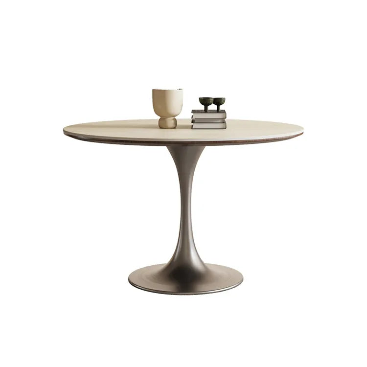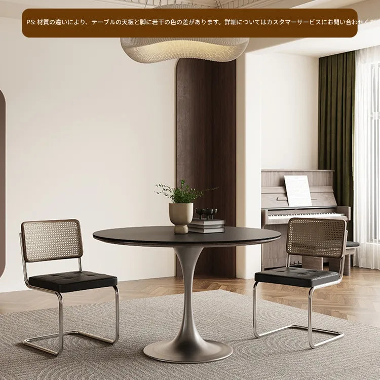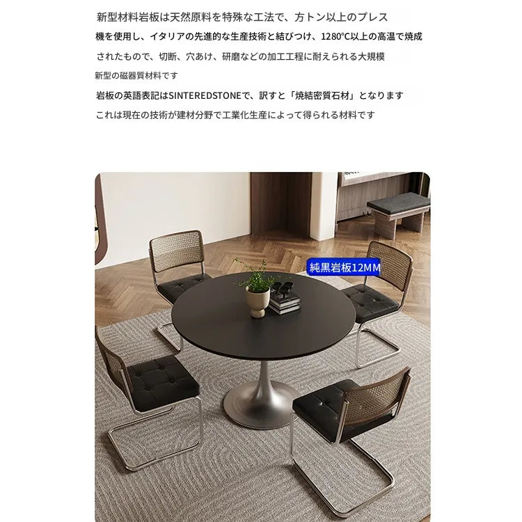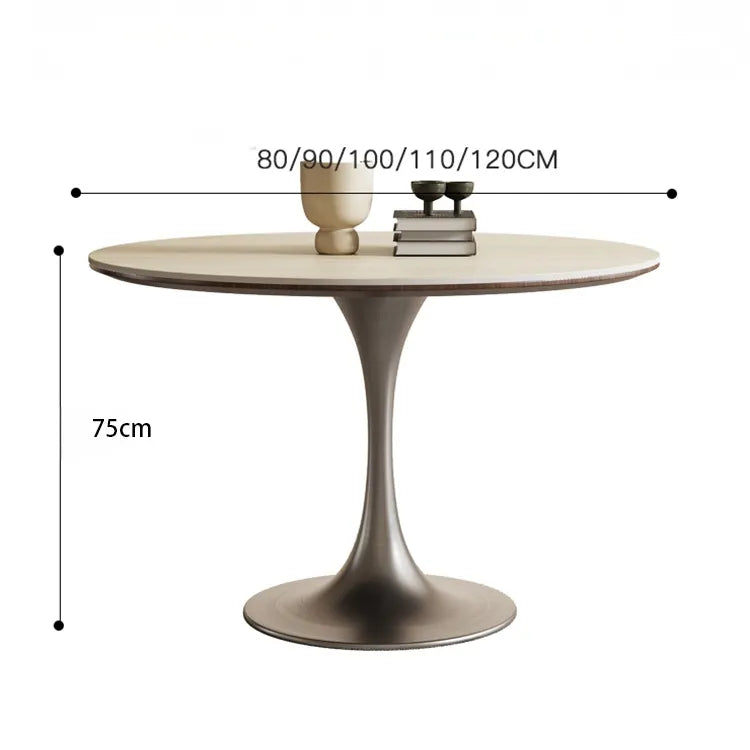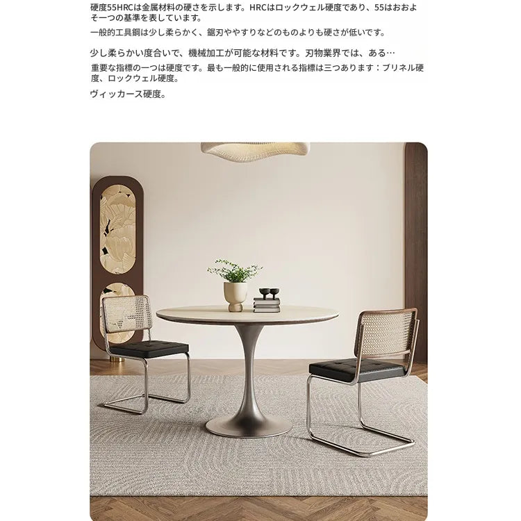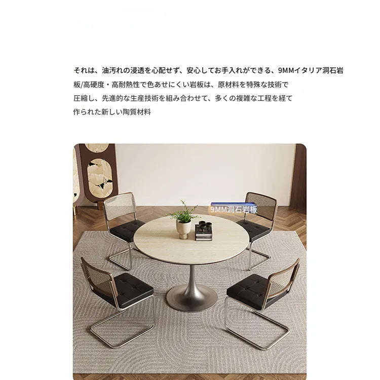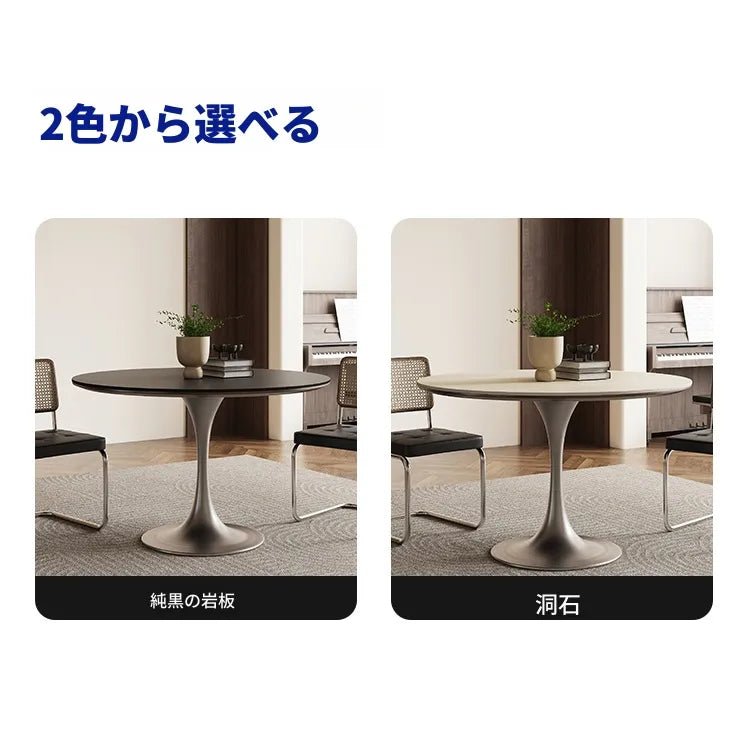 洞石岩板円形ダイニングテーブル チューリップデザイン金属脚 hjj-3673