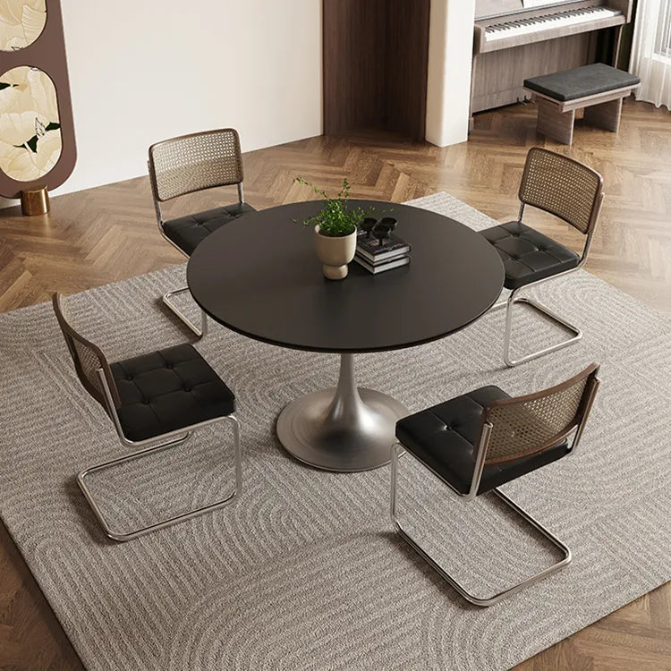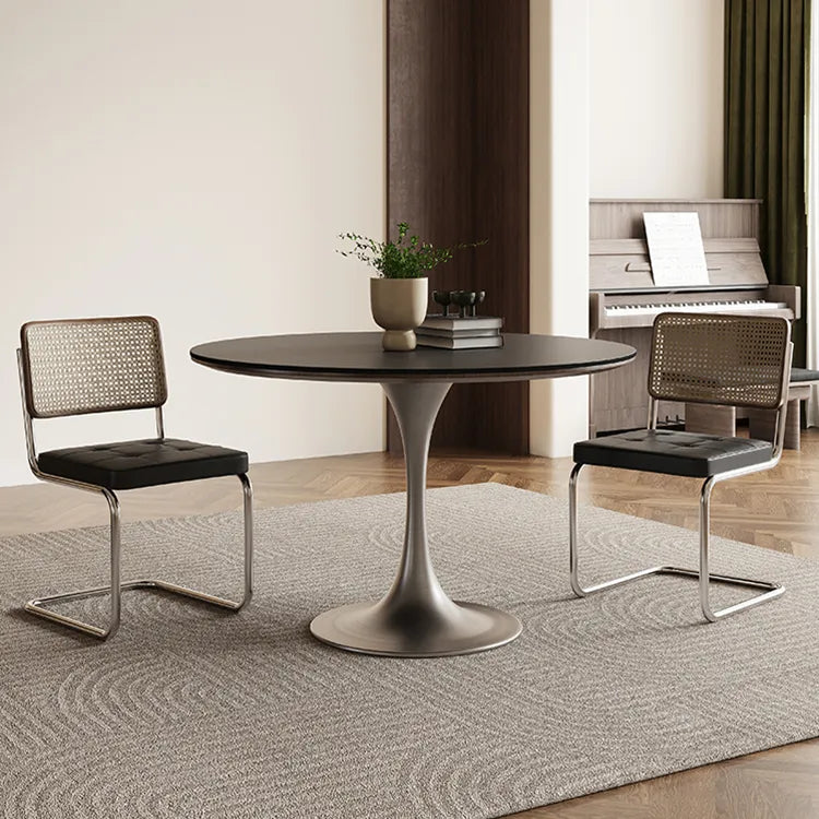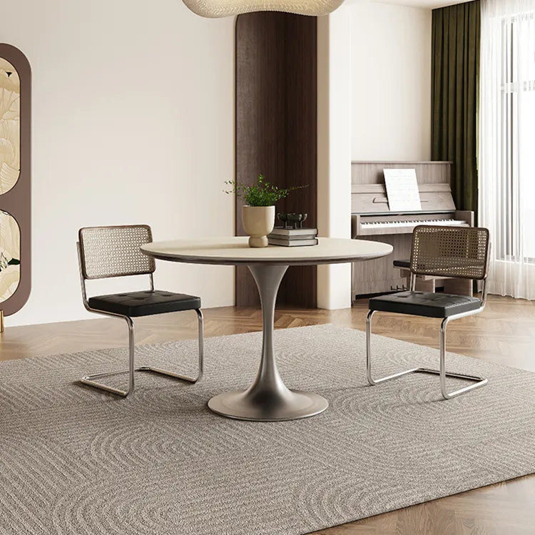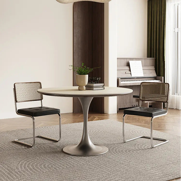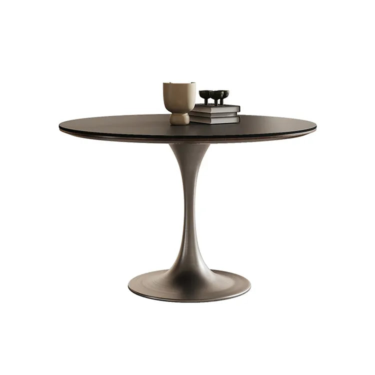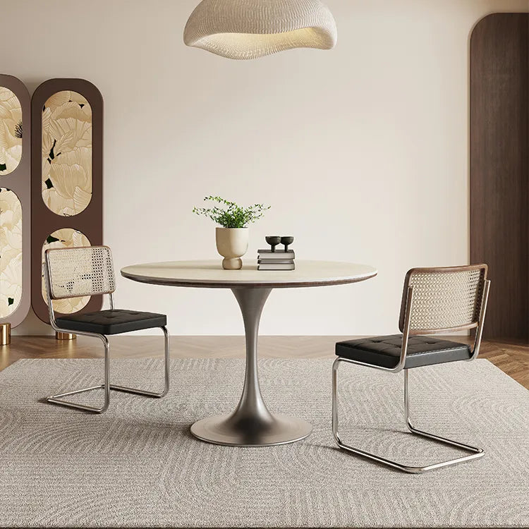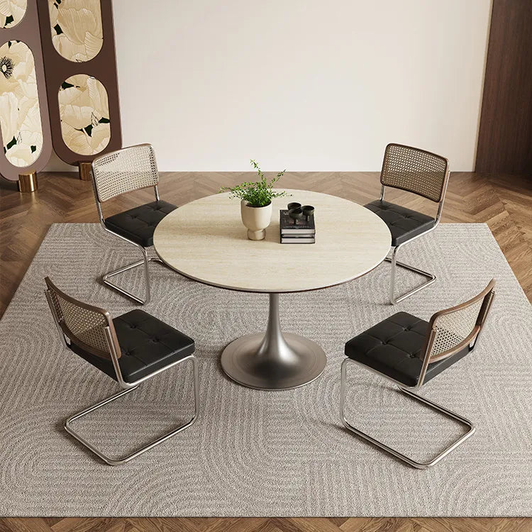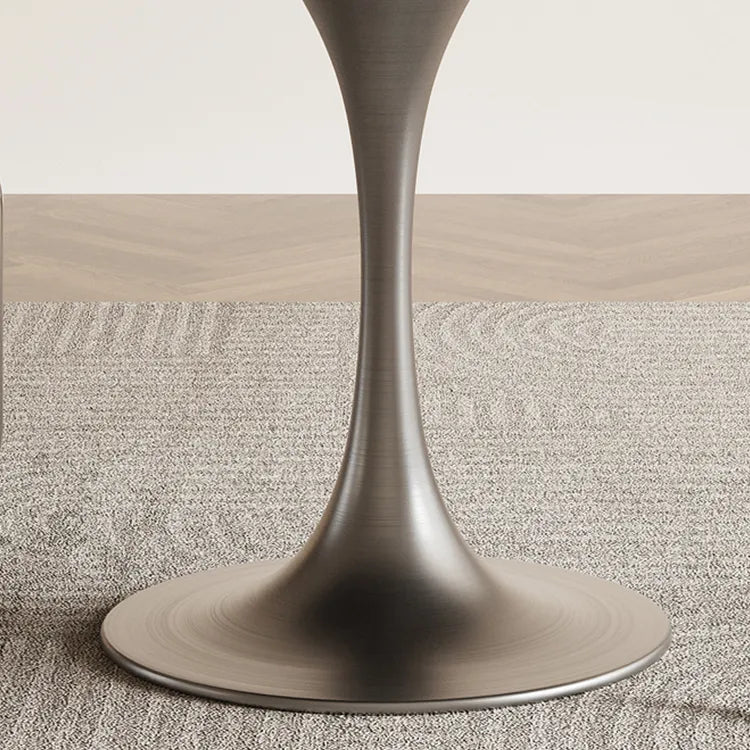 洞石岩板円形ダイニングテーブル チューリップデザイン金属脚 hjj-3673