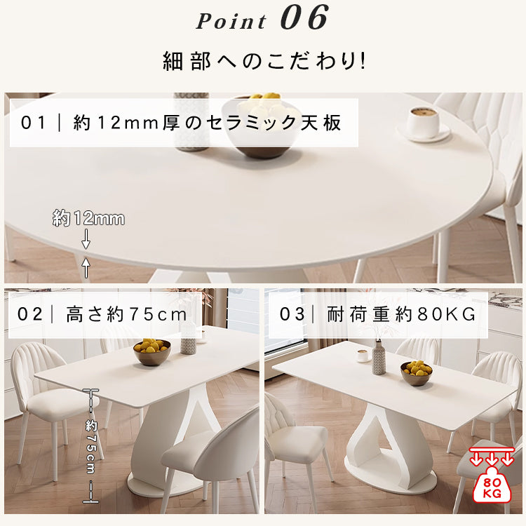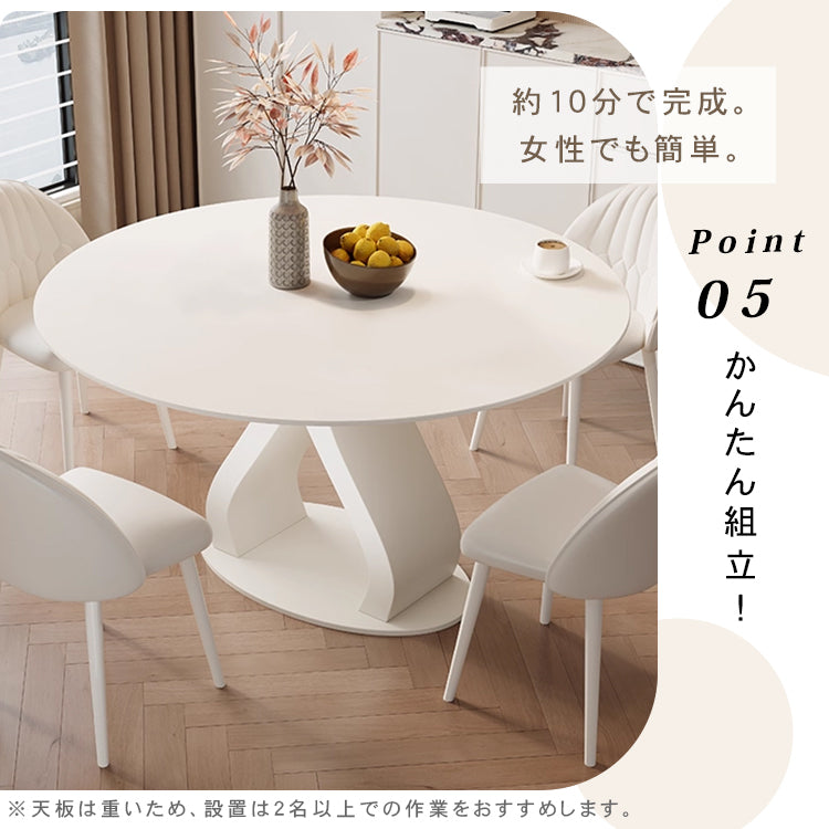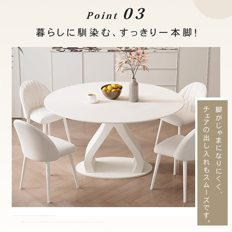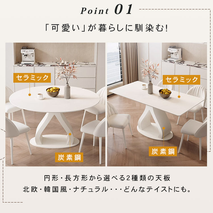 アイボリー系セラミック天板 円形ダイニングテーブル 2人掛け モダンスタイル 小型住宅向け htt-3543