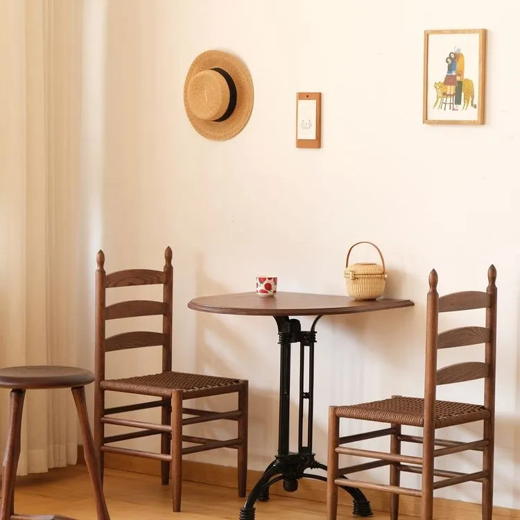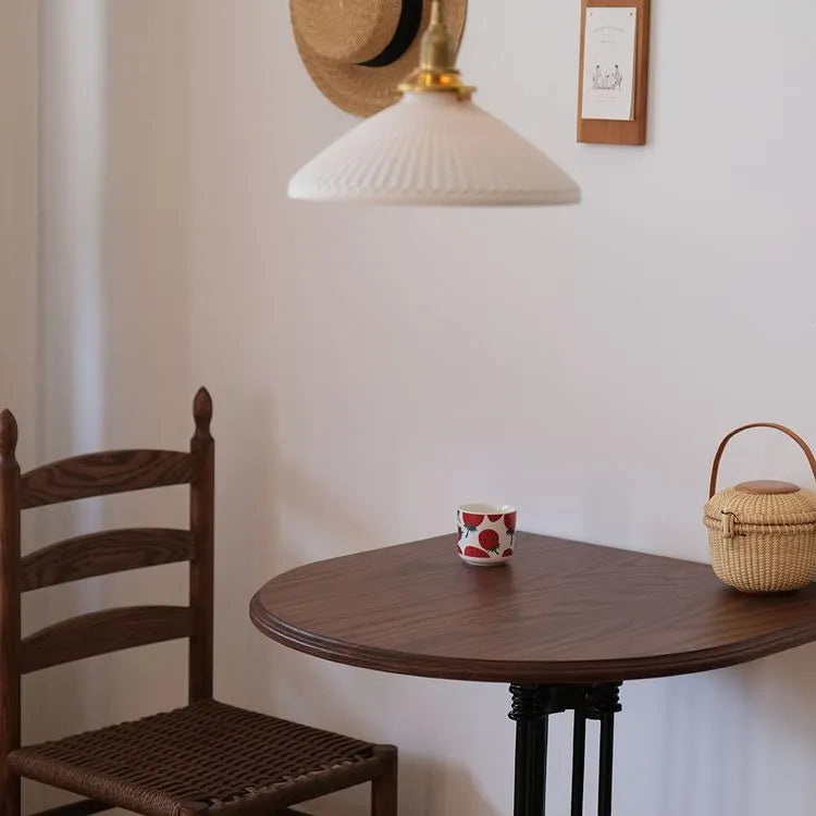 壁付けアイアン無垢材ハーフラウンドダイニングテーブルブラウン htysd-3186