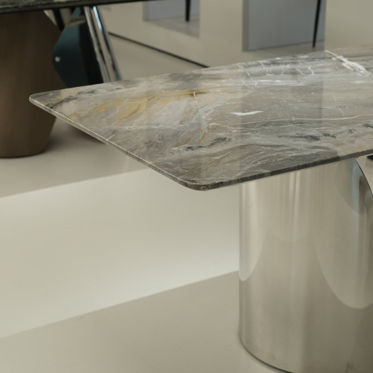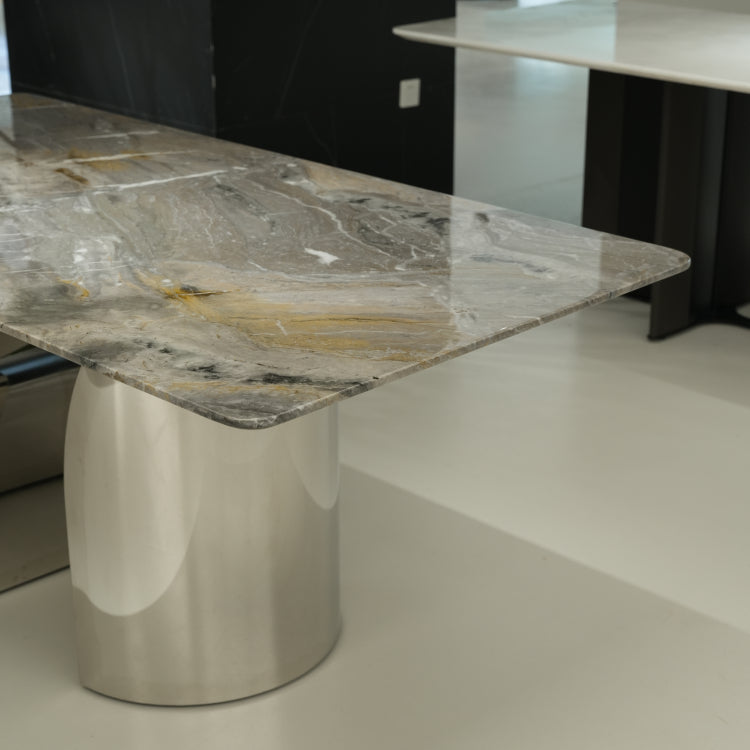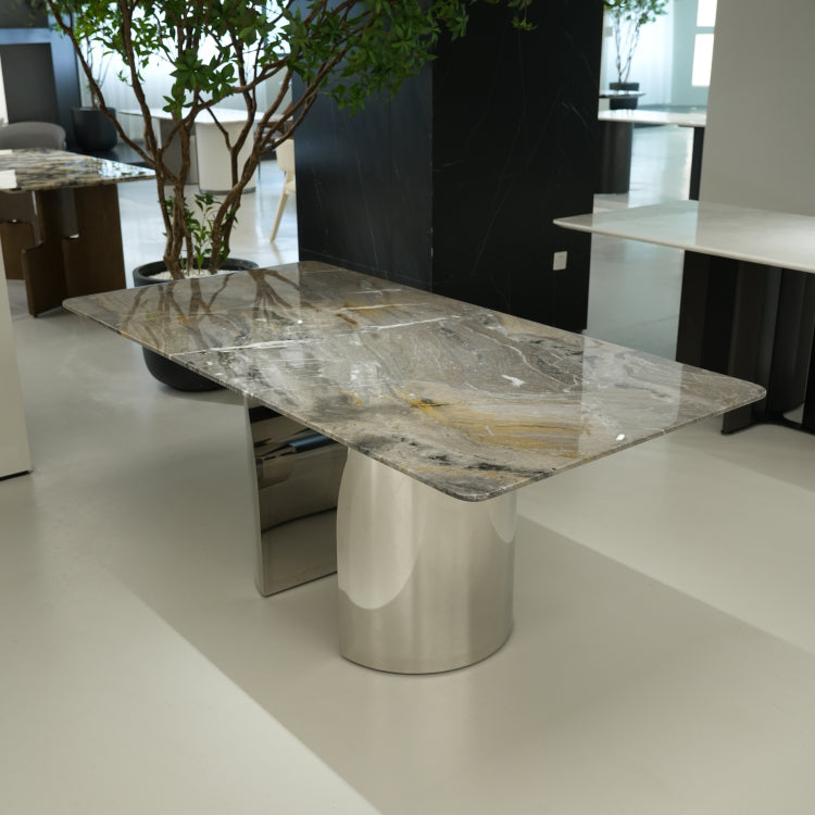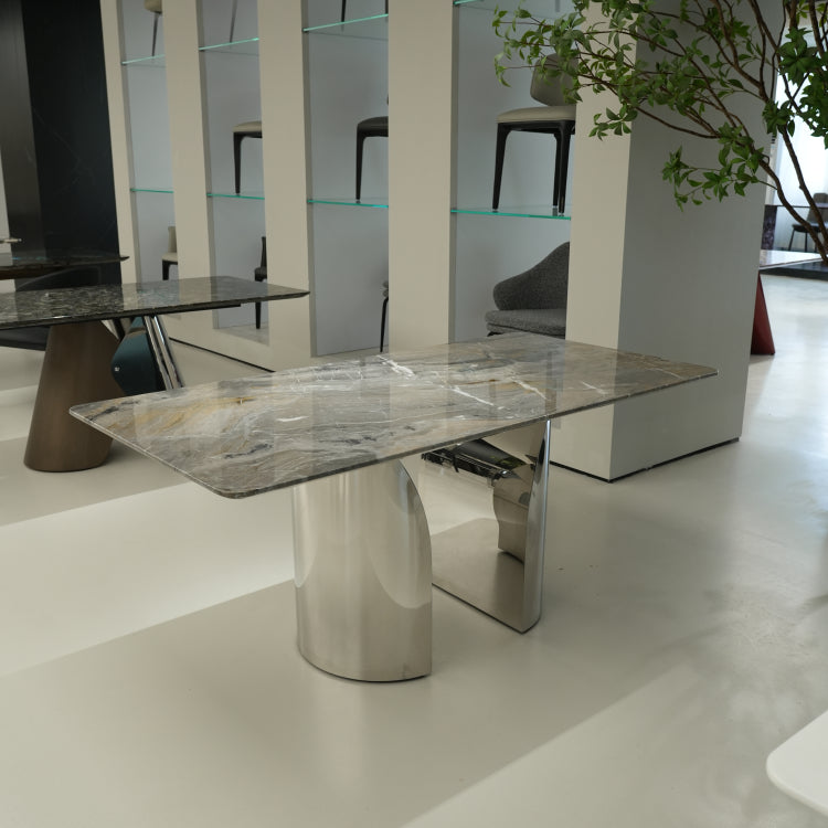 天然大理石 ヴェネチアブラウン マーブルテーブル ダイニングテーブル 高級モダンデザイン ステンレス脚 ラグジュアリー家具180cm×90cm jrjj-6739