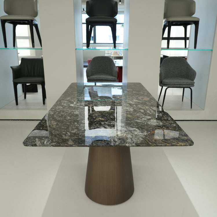 ラグジュアリー 天然大理石テーブル ダイニングテーブル プラチナグレー調 高級メタリックモダン ダイニング デザイナーズ家具180cm×90cm jrjj-6770