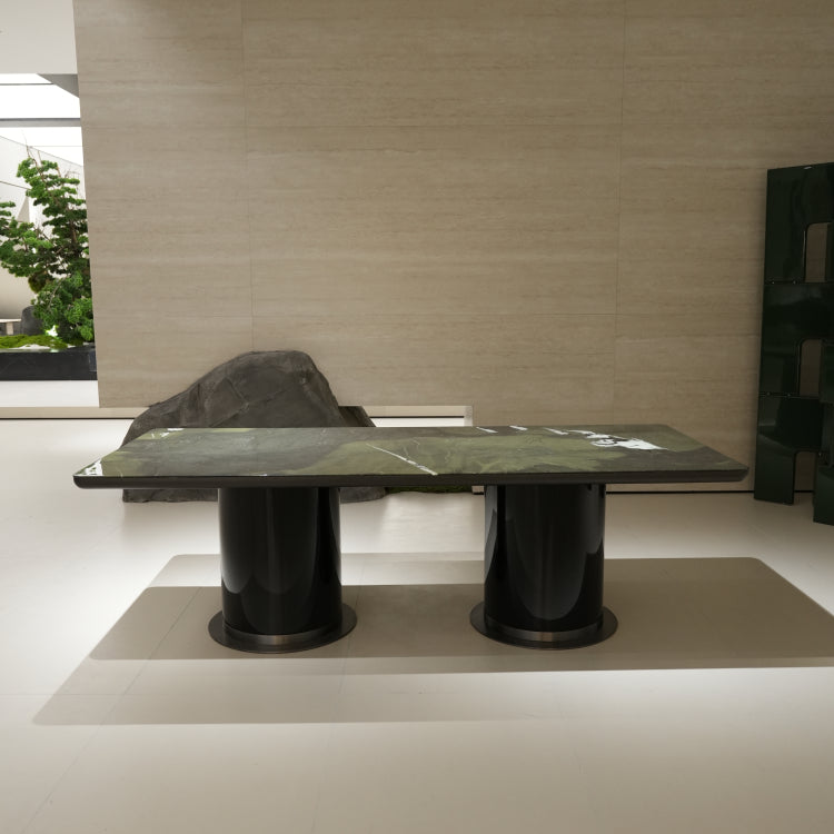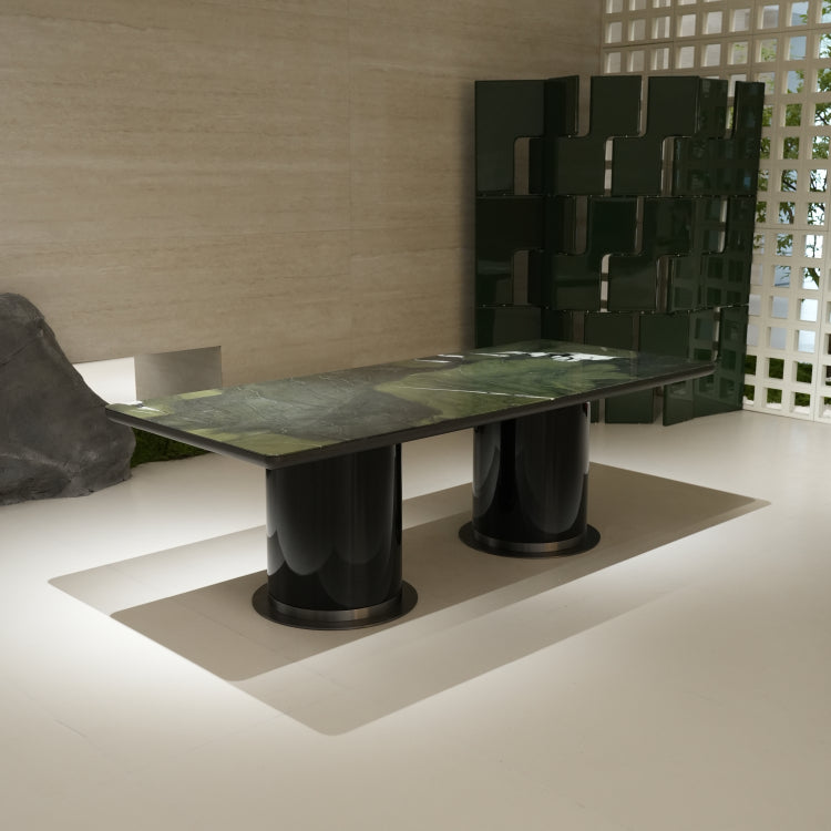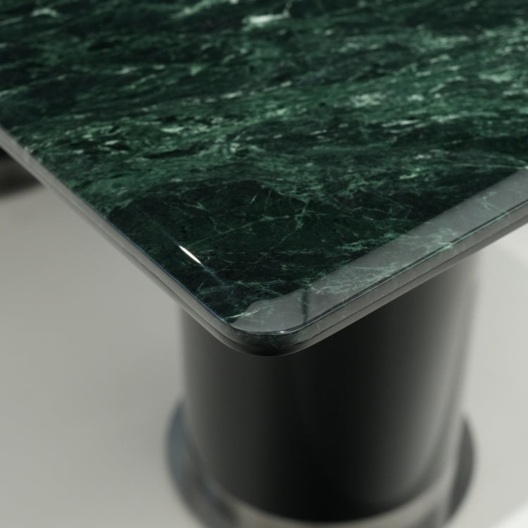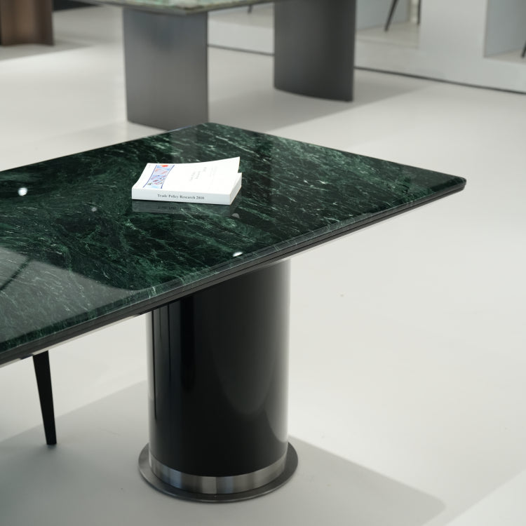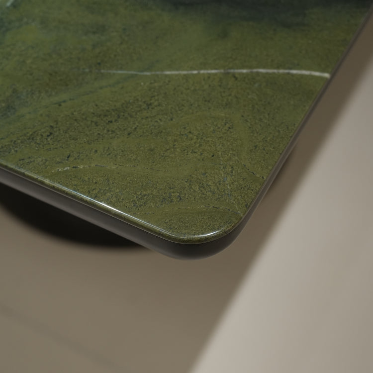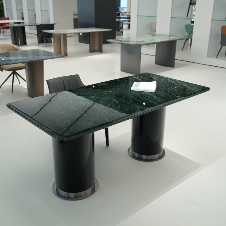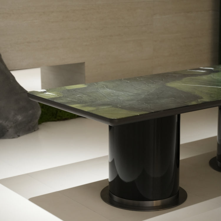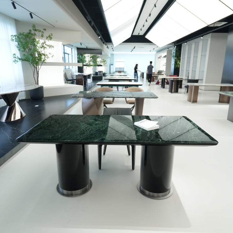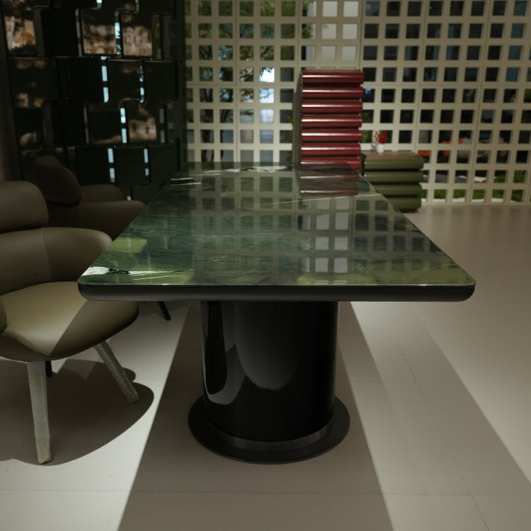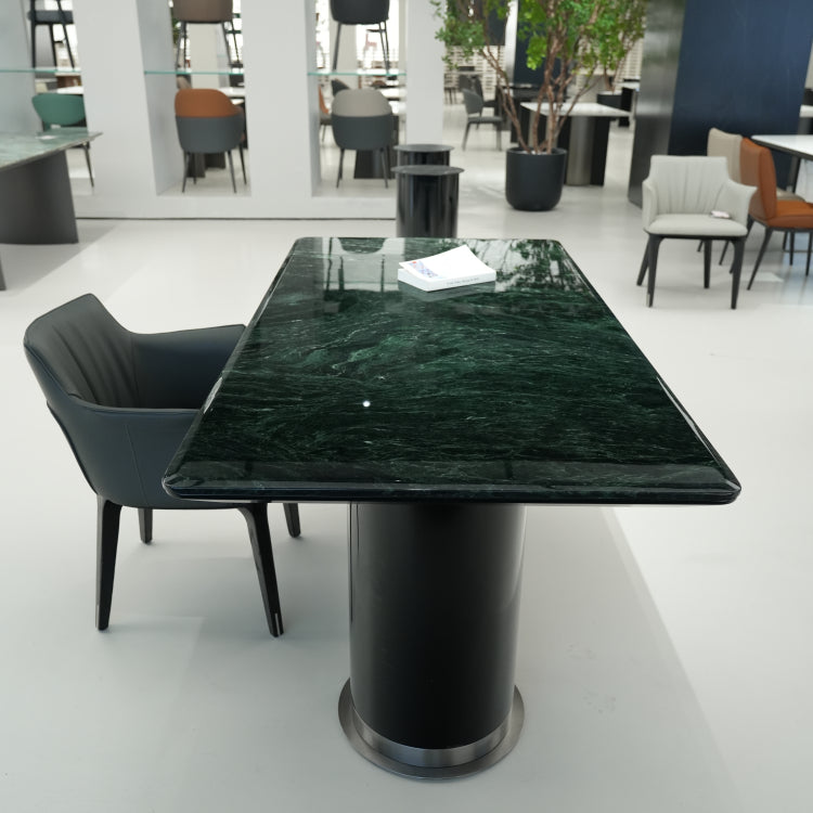 ラグジュアリー天然大理石ダイニングテーブル アボカドグリーン調の丸縁厚天板が映える高級デザイナーズモダン240cm 180cm jrjj-6805