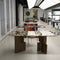 ラグジュアリー 天然大理石テーブル ダイニングテーブル ホワイト×グレー調天板 高級ナチュラルモダン デザイナーズダイニング180cm×90cm jrjj-A11