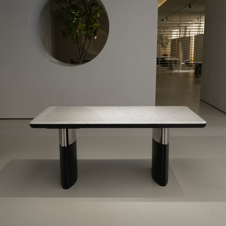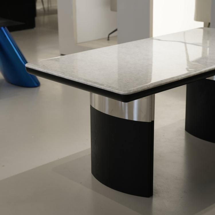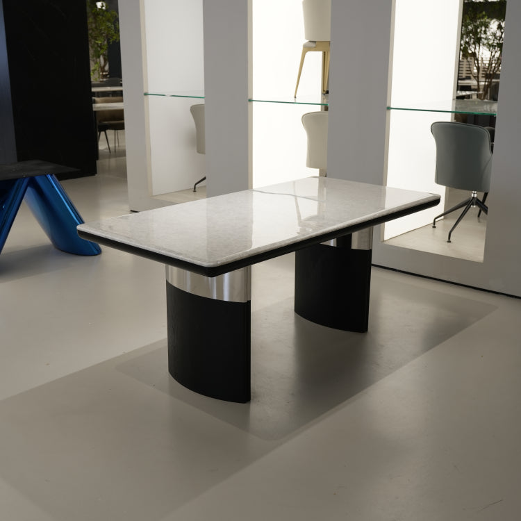 ラグジュアリー 天然大理石ダイニングテーブル ホワイトクリスタル調天板 高級モダンインテリア ブラックベースデザイン180cm jrjj-A35