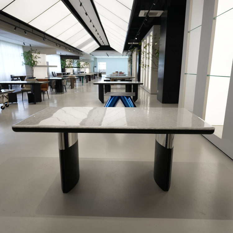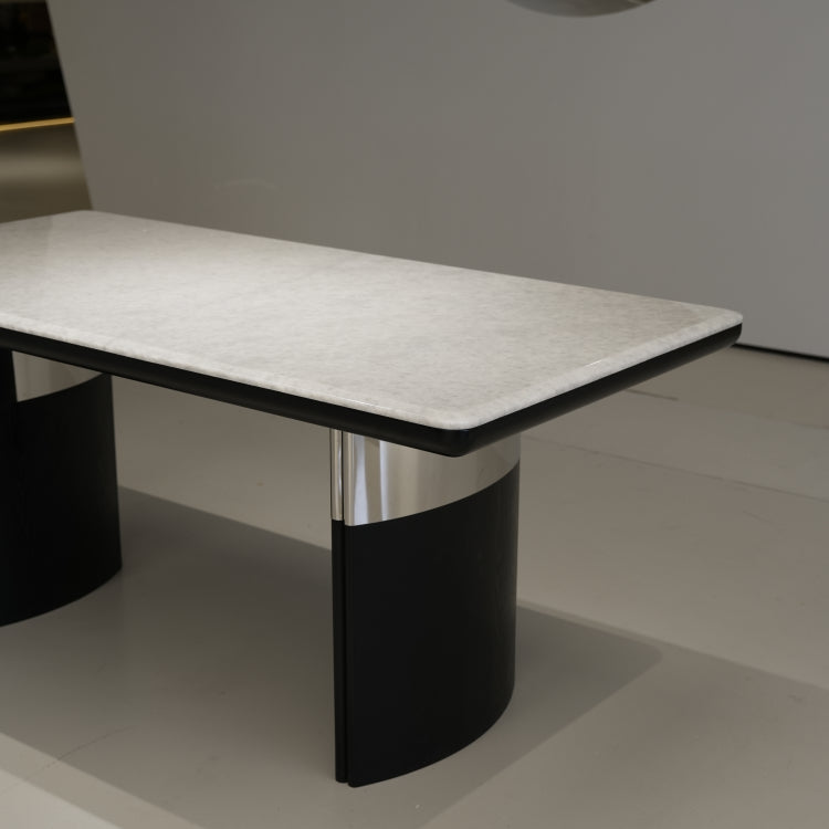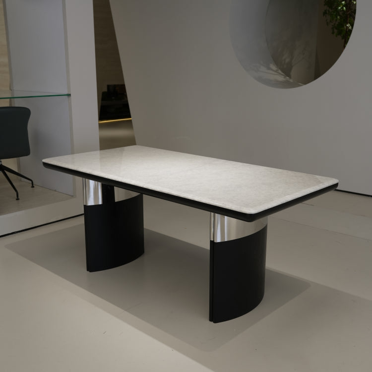 ラグジュアリー 天然大理石ダイニングテーブル ホワイトクリスタル調天板 高級モダンインテリア ブラックベースデザイン180cmjrjj-A35