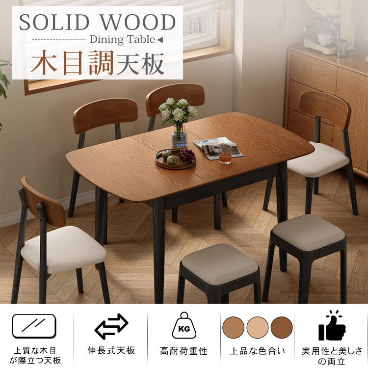 北欧無垢材伸縮折りたたみダイニングテーブルブラウン長方形 hqmgf-3910